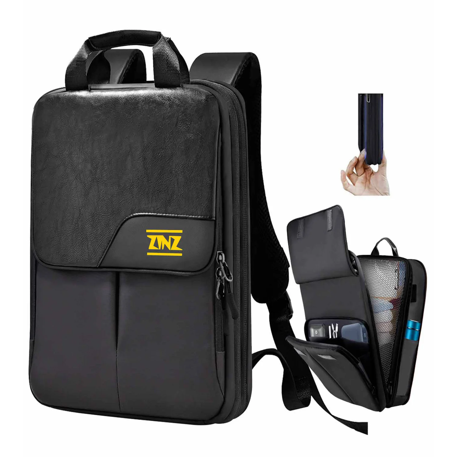Comodo e robusto-confortevole imbottito morbido e traspirante per cinturini, la tracolla mantiene lo zaino saldamente nella schiena quando si cammina. Manico superiore in pelle facile da trasportare. Perfetto per affari e come regalo di viaggio per uomini e donne.