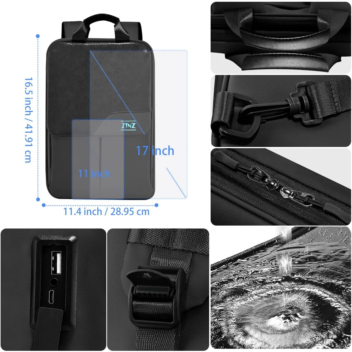 Zaino da viaggio antipioggia-realizzato in pelle sintetica premium e panno in poliestere sono impermeabili e resistenti. Non importa quanto vento o forti distorsioni, il nostro zaino per laptop da viaggio è ancora senza paura.