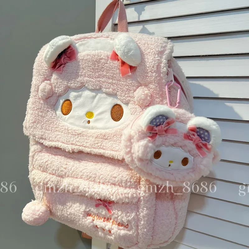 Zaino Sanrio Cartoon per ragazza donna My Melody Sweet Piano Zaino adorabile Borsa in peluche casual di grande capacità in stile giapponese