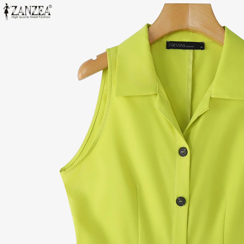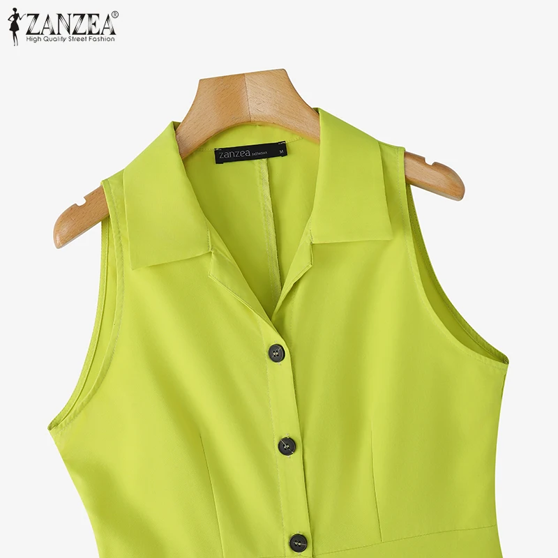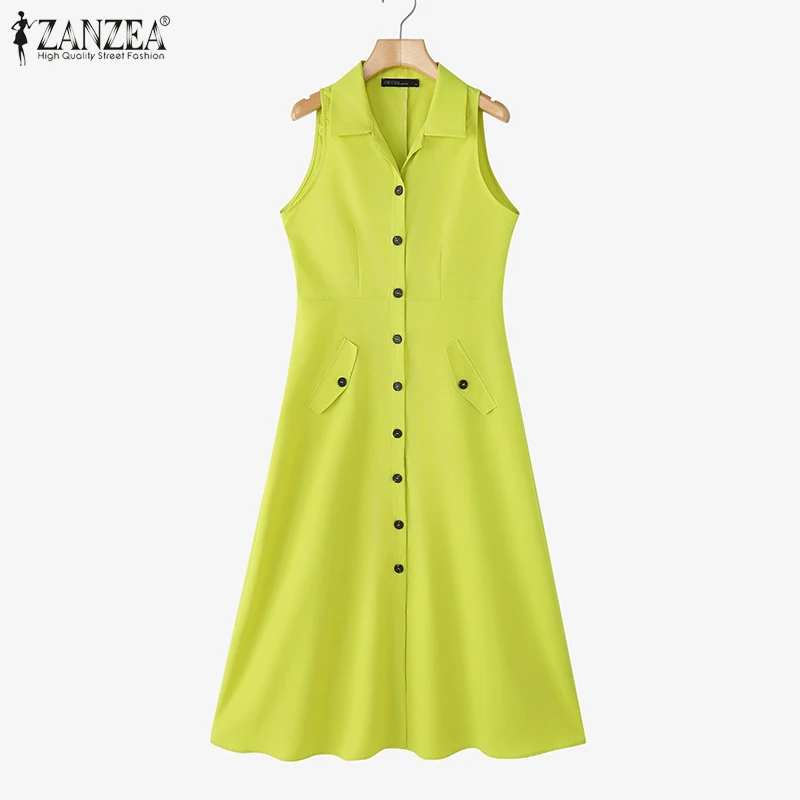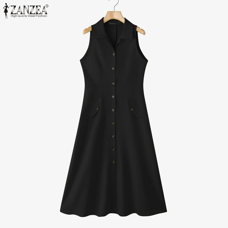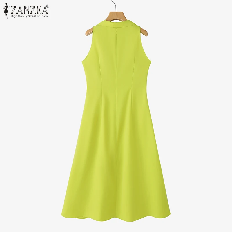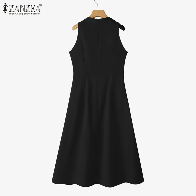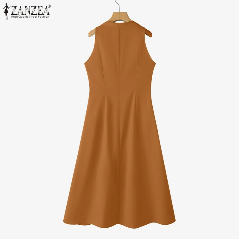 ZANZEA Abito senza maniche da donna Moda Office Lady Vestito estivo Summer Party Abiti lunghi 2025 Bohemian Solid Casual Risvolto Collo Robe