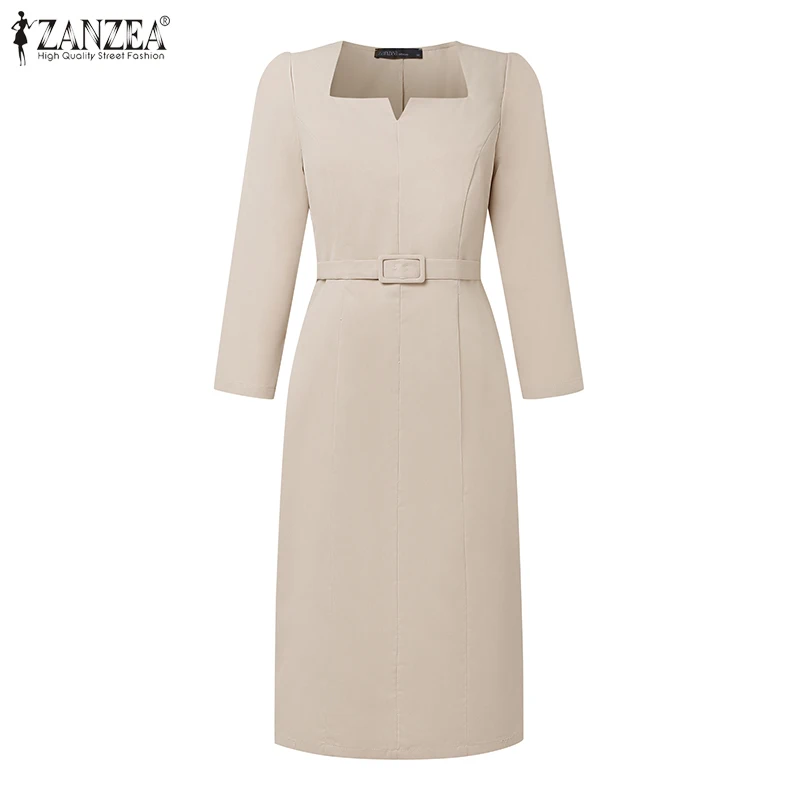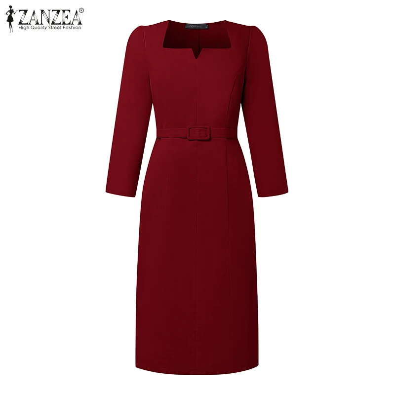 "Tipo di articolo: vestito Materiale: 100% poliestere Colori: rosso, nero, albicocca Il pacchetto include: 1 vestito (include la cintura) Taglio: normale Allungamento: non estensibile Lunghezza: lunghezza del polpaccio Colletto: collo quadrato Stile manica: normale Lunghezza manica: manica 3/4 Tipo di chiusura: cerniera Girovita: standard Modello: solido Spessore: standard Stile: casual, pendolarismo, vintage, elegante, moda di strada Stagione: primavera, autunno Occasione: tutti i giorni, ufficio, vacanze, casa, casual, viaggi Etichetta: sì