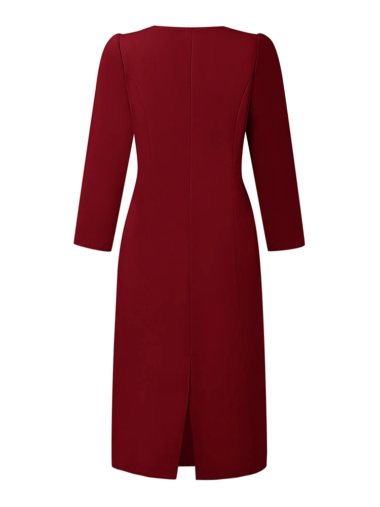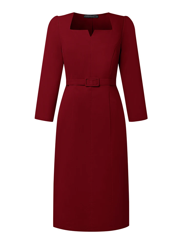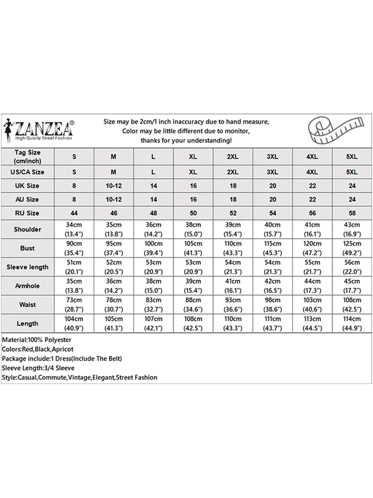 "Tipo di articolo: vestito Materiale: 100% poliestere Colori: rosso, nero, albicocca Il pacchetto include: 1 vestito (include la cintura) Taglio: normale Allungamento: non estensibile Lunghezza: lunghezza del polpaccio Colletto: collo quadrato Stile manica: normale Lunghezza manica: manica 3/4 Tipo di chiusura: cerniera Girovita: standard Modello: solido Spessore: standard Stile: casual, pendolarismo, vintage, elegante, moda di strada Stagione: primavera, autunno Occasione: tutti i giorni, ufficio, vacanze, casa, casual, viaggi Etichetta: sì