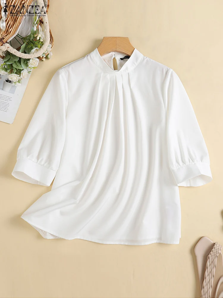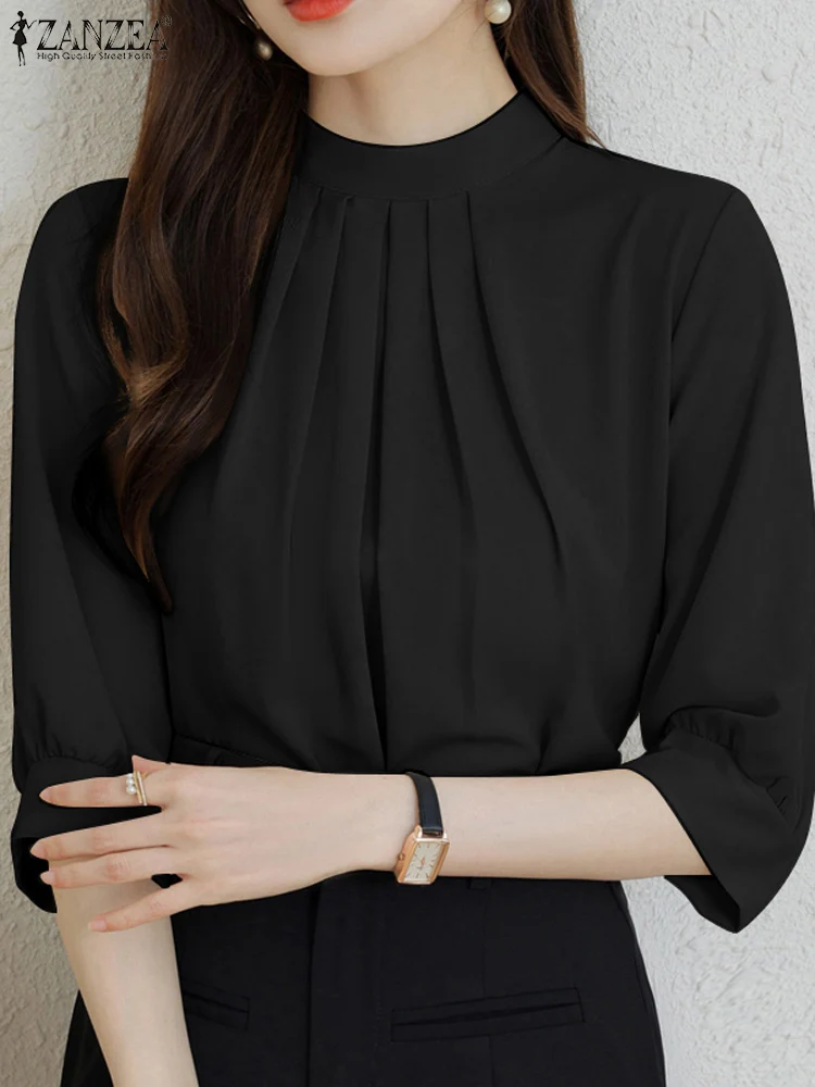 ZANZEA Estate Donna Solid Work OL Camicia Moda Manica 3/4 Casual Top a pieghe Elegante Office Lady Camicetta Donna Blusas allentati