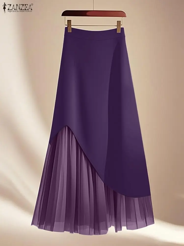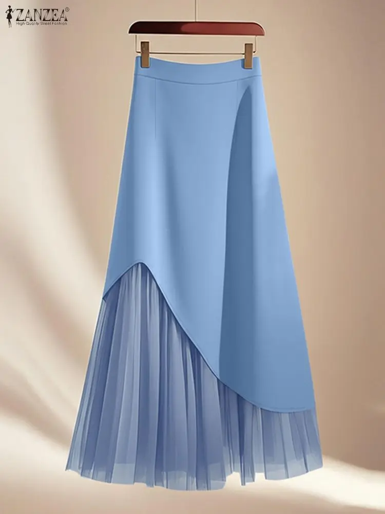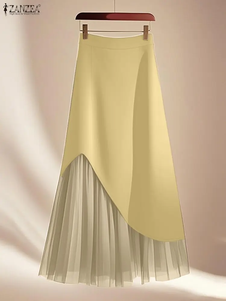 ZANZEA Ufficio Gonne da donna 2025 Elegante gonna da festa a vita alta Elegante maglia patchwork Jupes Moda A-line OL Lavoro Faldas Saia
