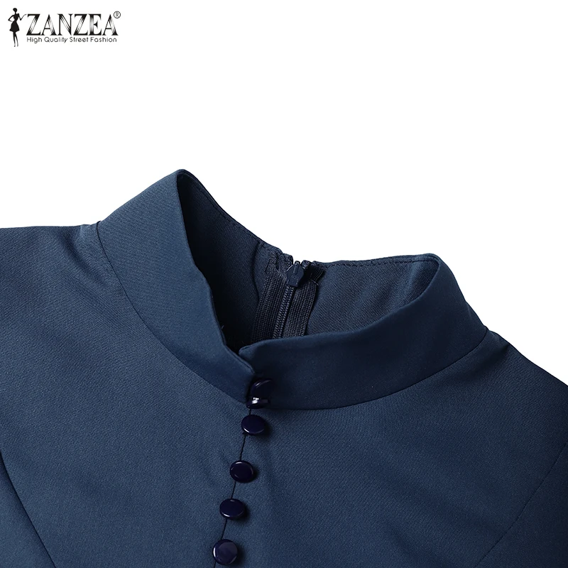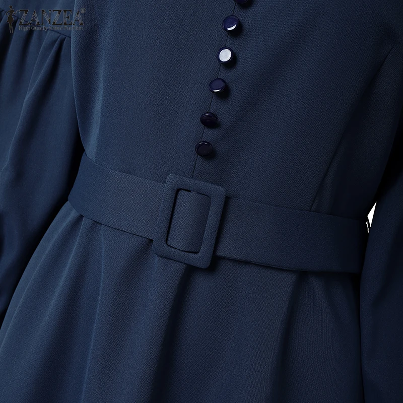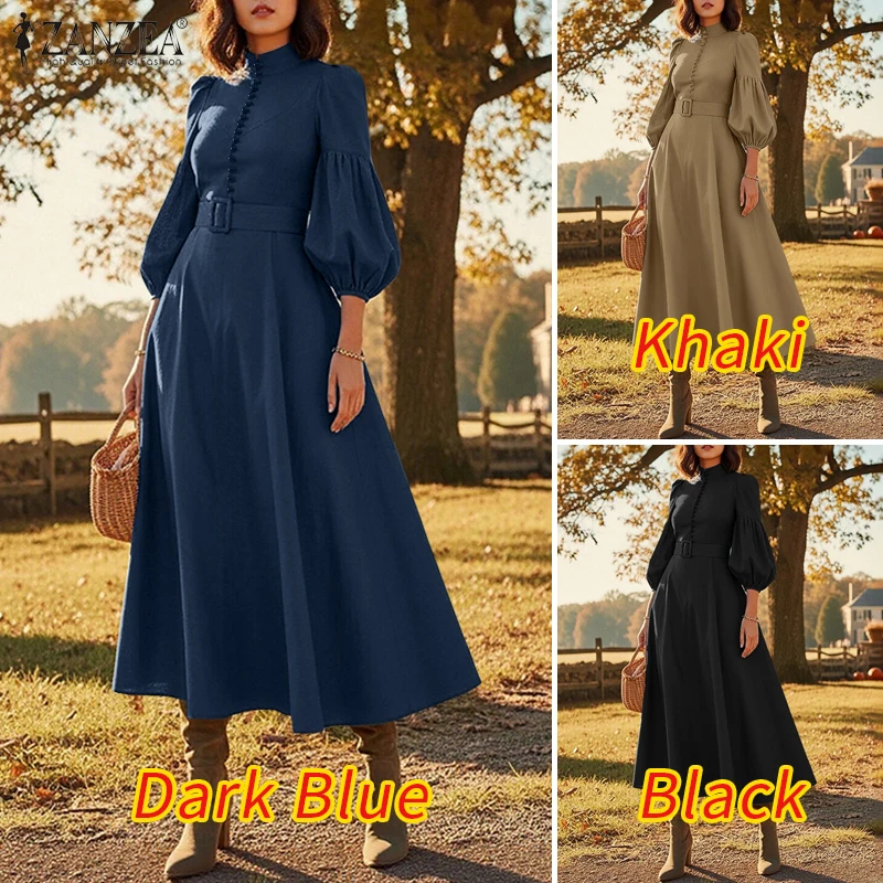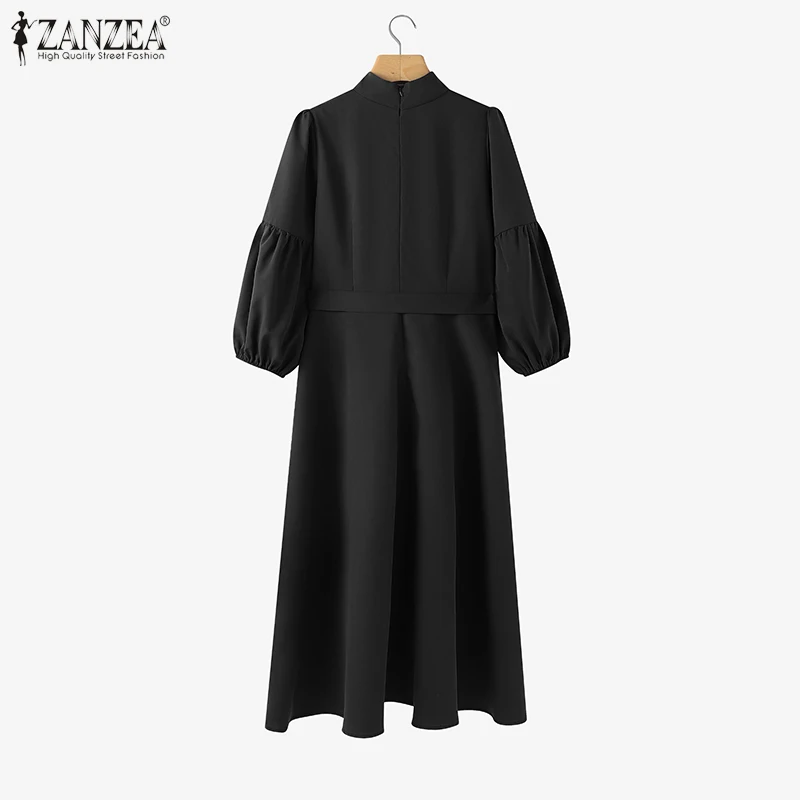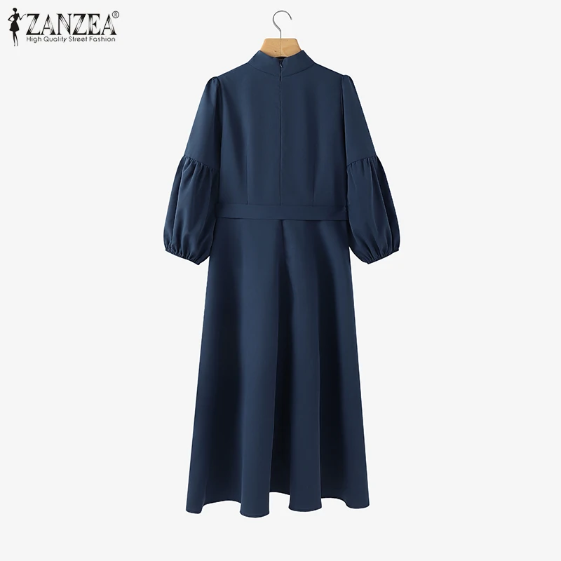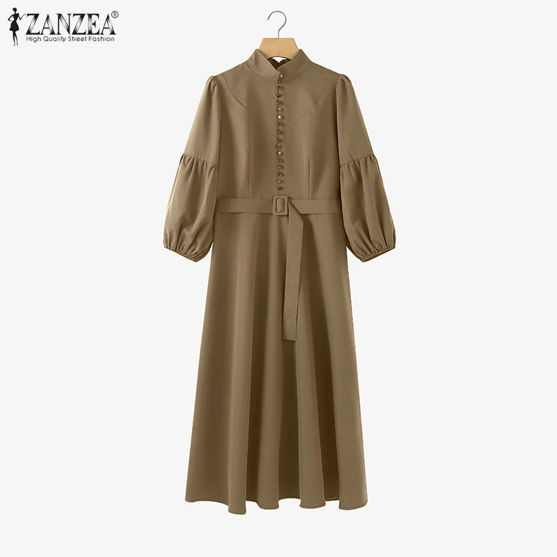 ZANZEA Vintage Donna A-Line Abiti longuette Elegante Chic Colletto alla coreana 3/4 Manica a lanterna Abito da donna con cintura Autunno 2025 Nuova moda 1ZANZEA Vintage Donna A-Line Abiti longuette Elegante Chic Colletto alla coreana 3/4 Manica a lanterna Abito da donna con cintura Autunno 2025 Nuova moda