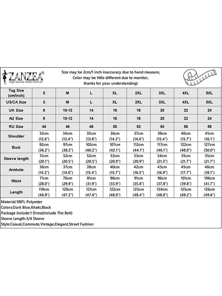 Tipo di articolo: vestito Materiale: 100% poliestere Colori: blu scuro, kaki, nero Il pacchetto include: 1 vestito (include la cintura) Taglio: normale Allungamento: non estensibile Lunghezza: lunghezza del polpaccio Collare: colletto rialzato Stile manica: manica a lanterna Lunghezza manica: manica 3/4 Girovita: standard Modello: solido Spessore: standard Stile: casual, pendolarismo, vintage, elegante Stagione: primavera, autunno Occasione: tutti i giorni, ufficio, vacanze, casa, casual, viaggi Etichetta: sì Attenzione: 1.A causa dei diversi computer, potrebbe esserci una sottile differenza di colore tra l’oggetto e l’immagine.Per favore, non sparare se ti dispiace.Grazie. 2.Potrebbe esserci un errore di misurazione manuale di 1-3 cm.Ti preghiamo di comprendere l’inconveniente. 3.Si prega di fare riferimento all’oggetto reale.Le immagini del modello sono solo di riferimento. 4. Attenzione!!! Si prega di controllare attentamente la tabella delle taglie prima di ordinare.