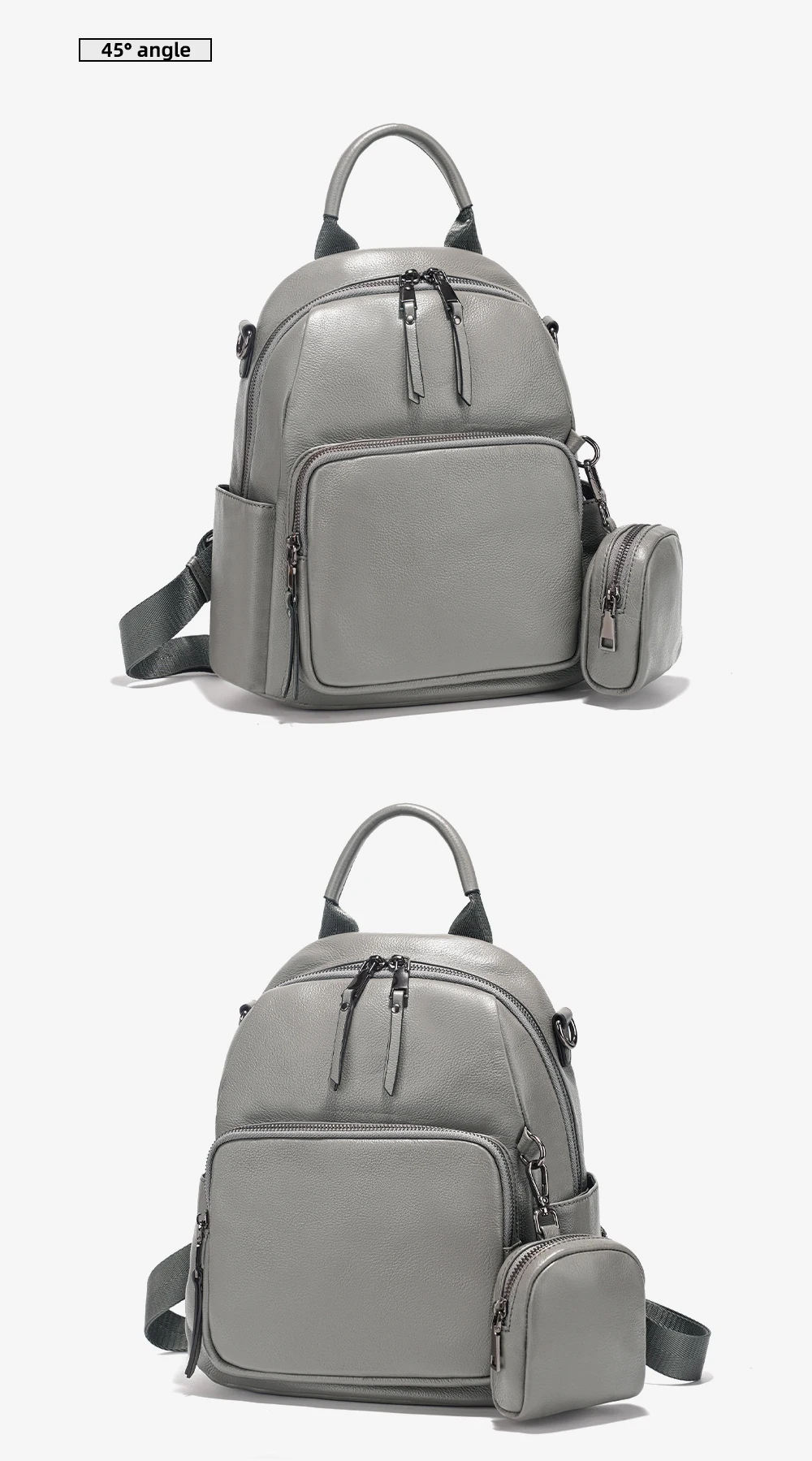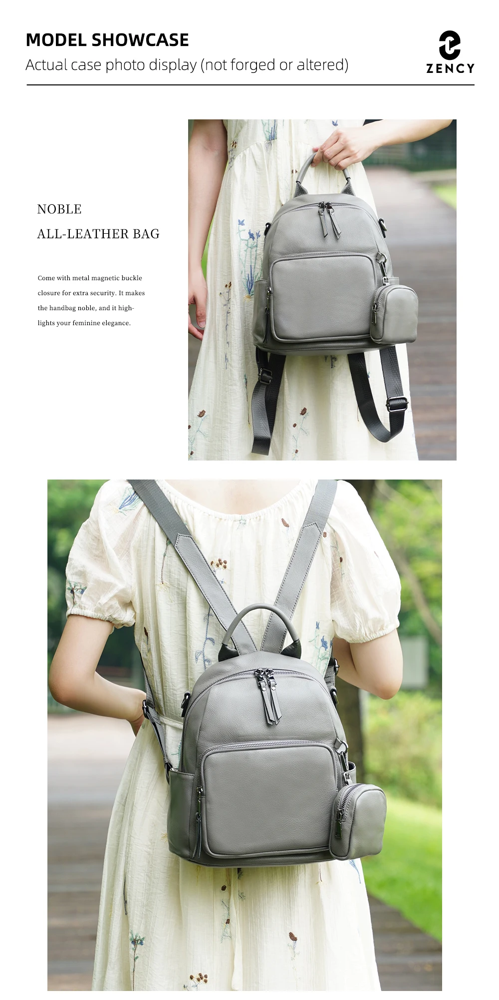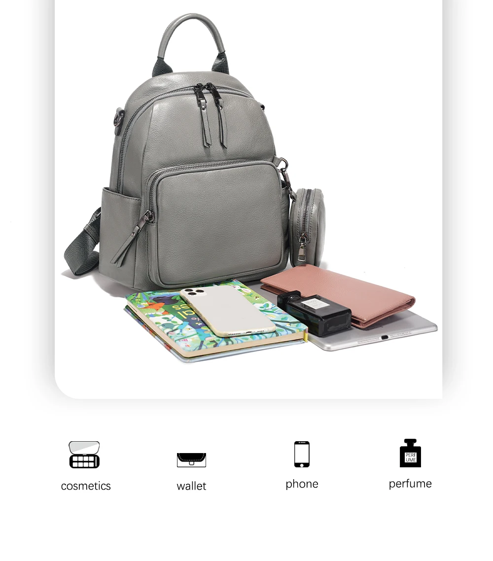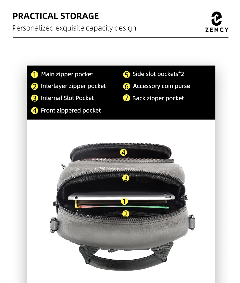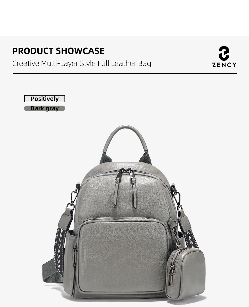 Zency Nuovo zaino da donna in vera pelle Zaino Borsa a tracolla multitasche 2025 Zaino in pelle di vacchetta con portamonete con cerniera