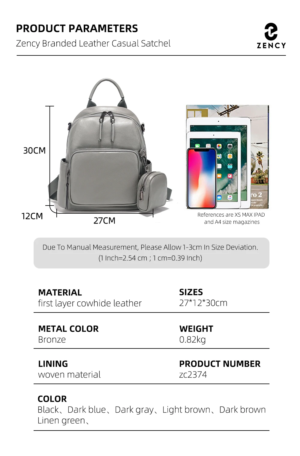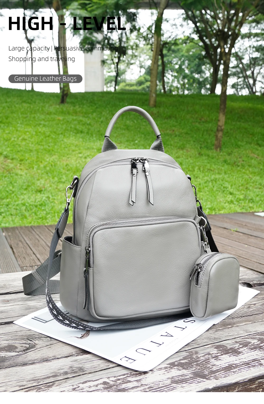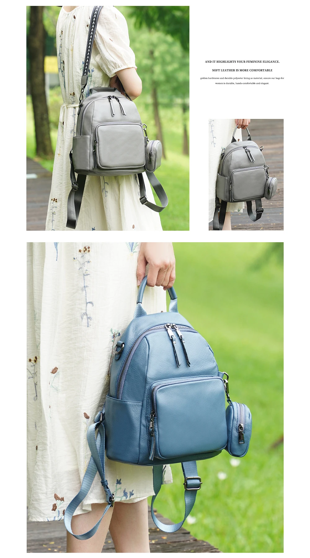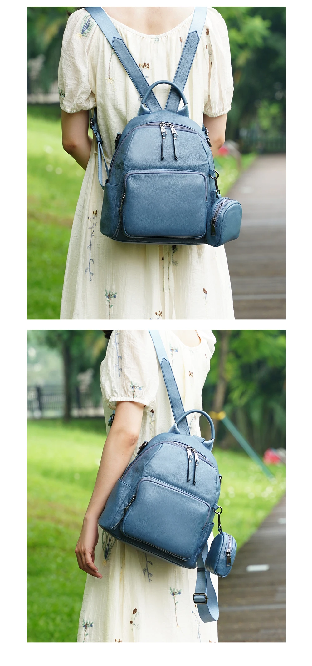 Zency Nuovo zaino da donna in vera pelle Zaino Borsa a tracolla multitasche 2025 Zaino in pelle di vacchetta con portamonete con cerniera
