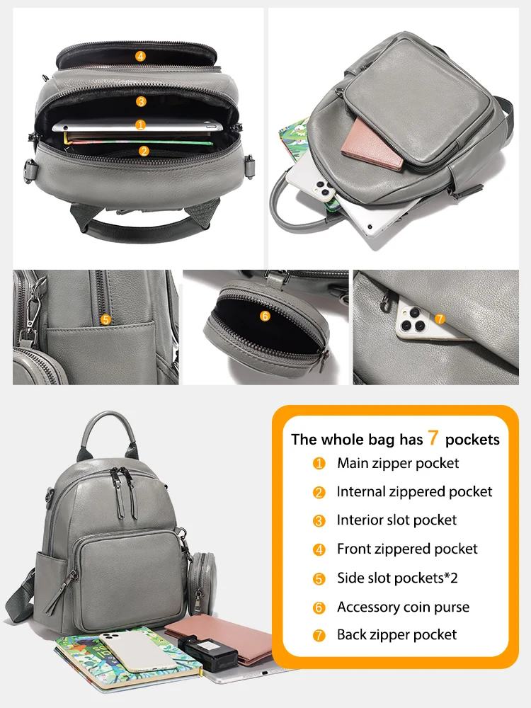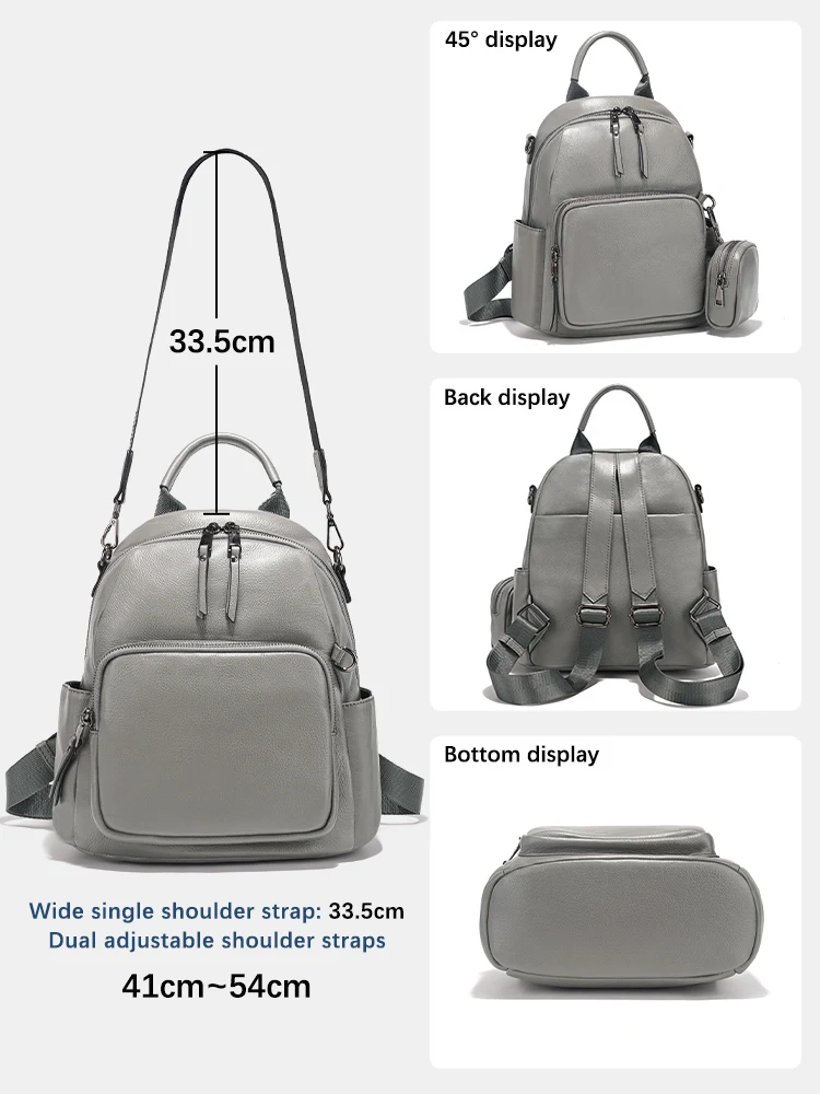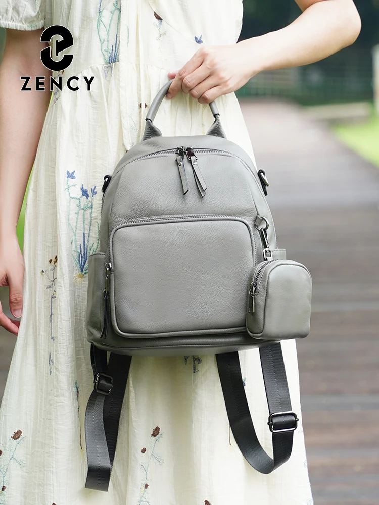 Zency Nuovo zaino da donna in vera pelle Zaino Borsa a tracolla multitasche 2025 Zaino in pelle di vacchetta con portamonete con cerniera