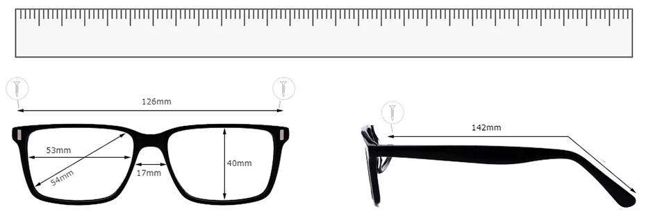 Il righello nella foto non può essere utilizzato per misurare i vecchi occhiali.Si prega di utilizzare la tua strumento di misurazione per controllare la dimensione delle vecchie coppie di bicchieri.(2-3 mm di differenza accettabile)