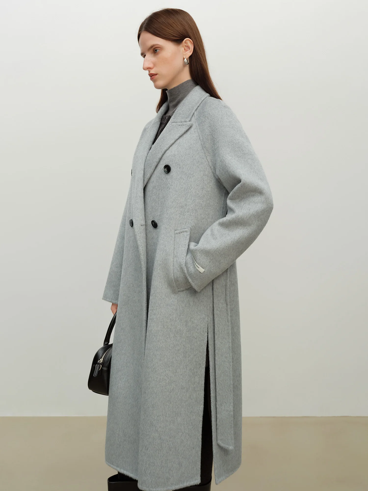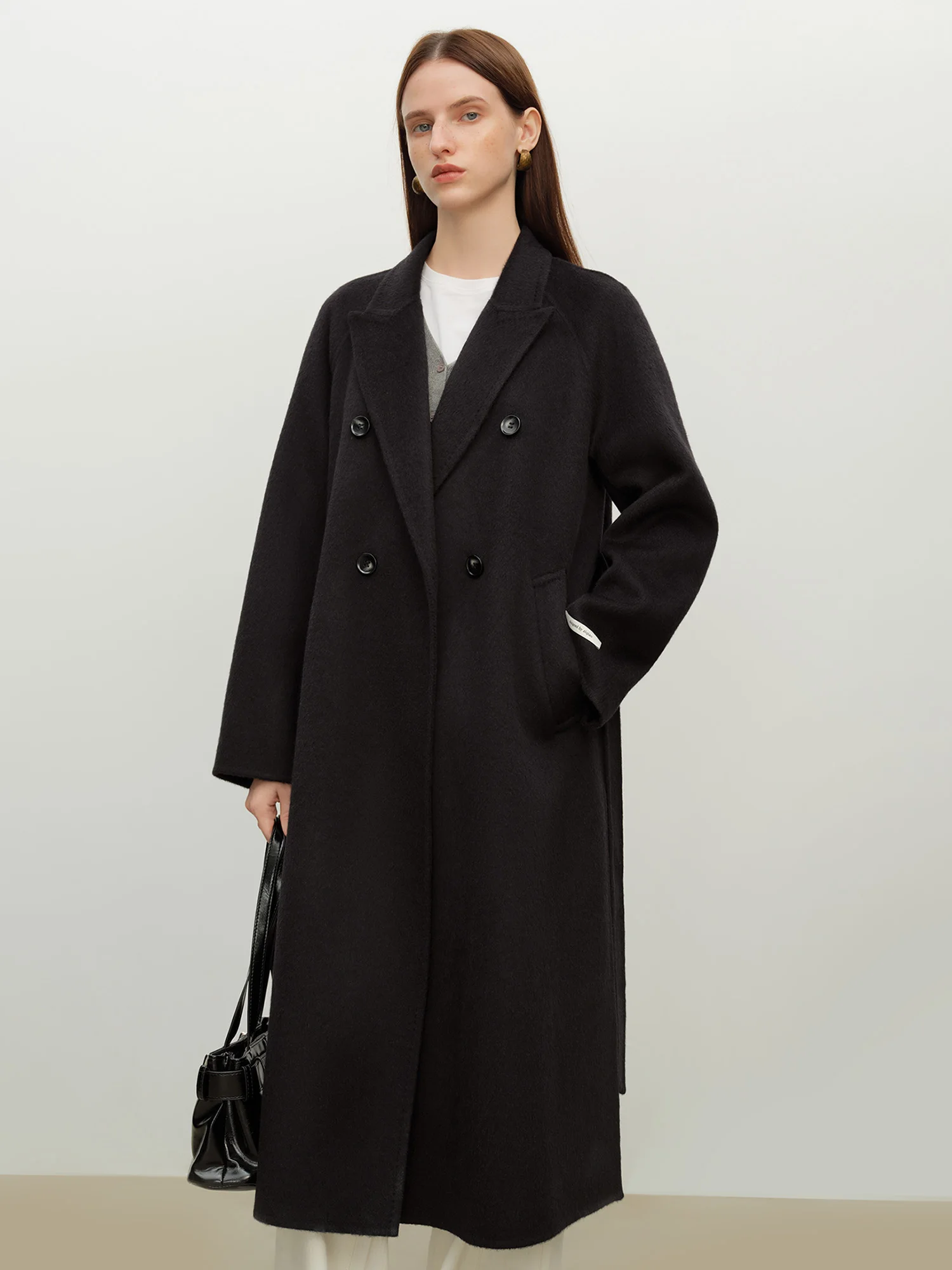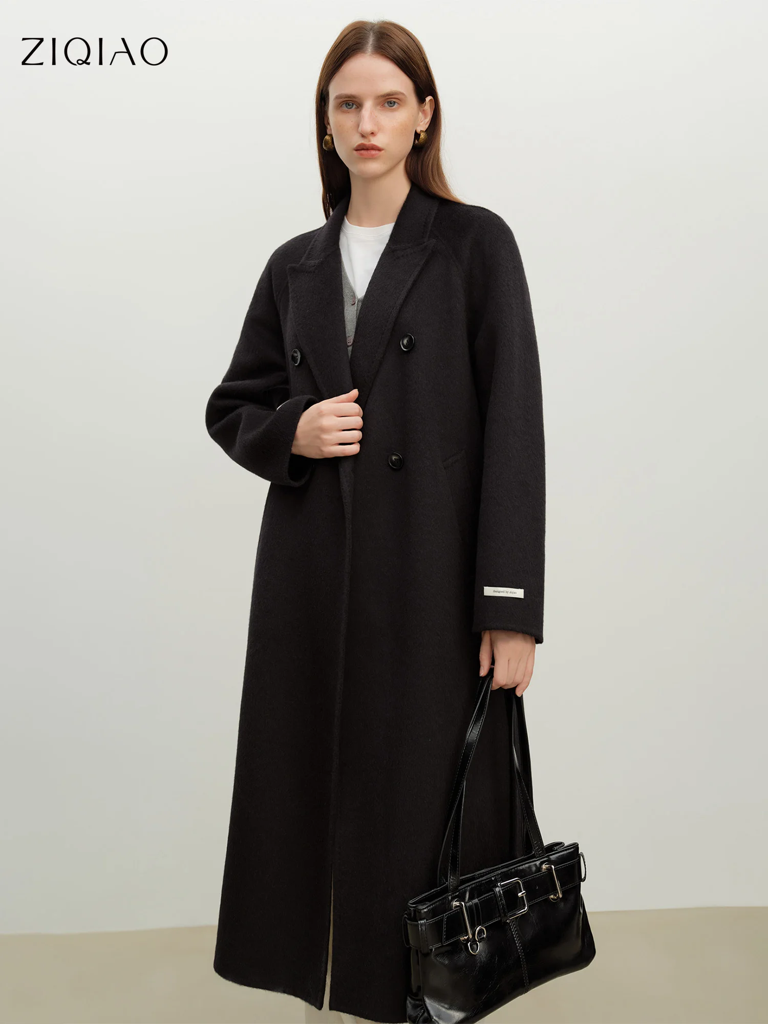 ZIQIAO 2025 Cappotto lungo da donna invernale in misto lana con risvolto con tacca – Elegante cappotto stile trench per abbigliamento casual e da ufficio