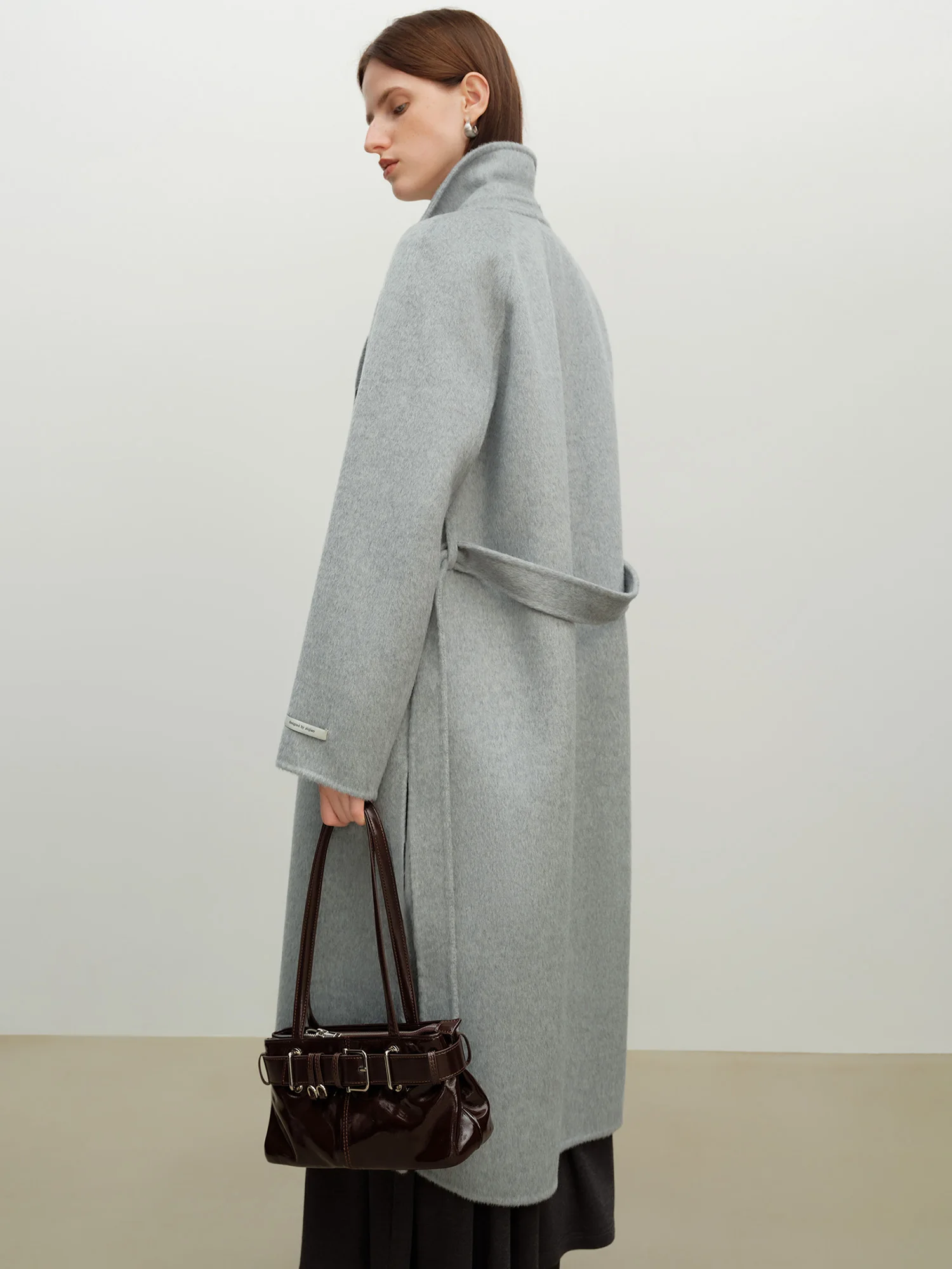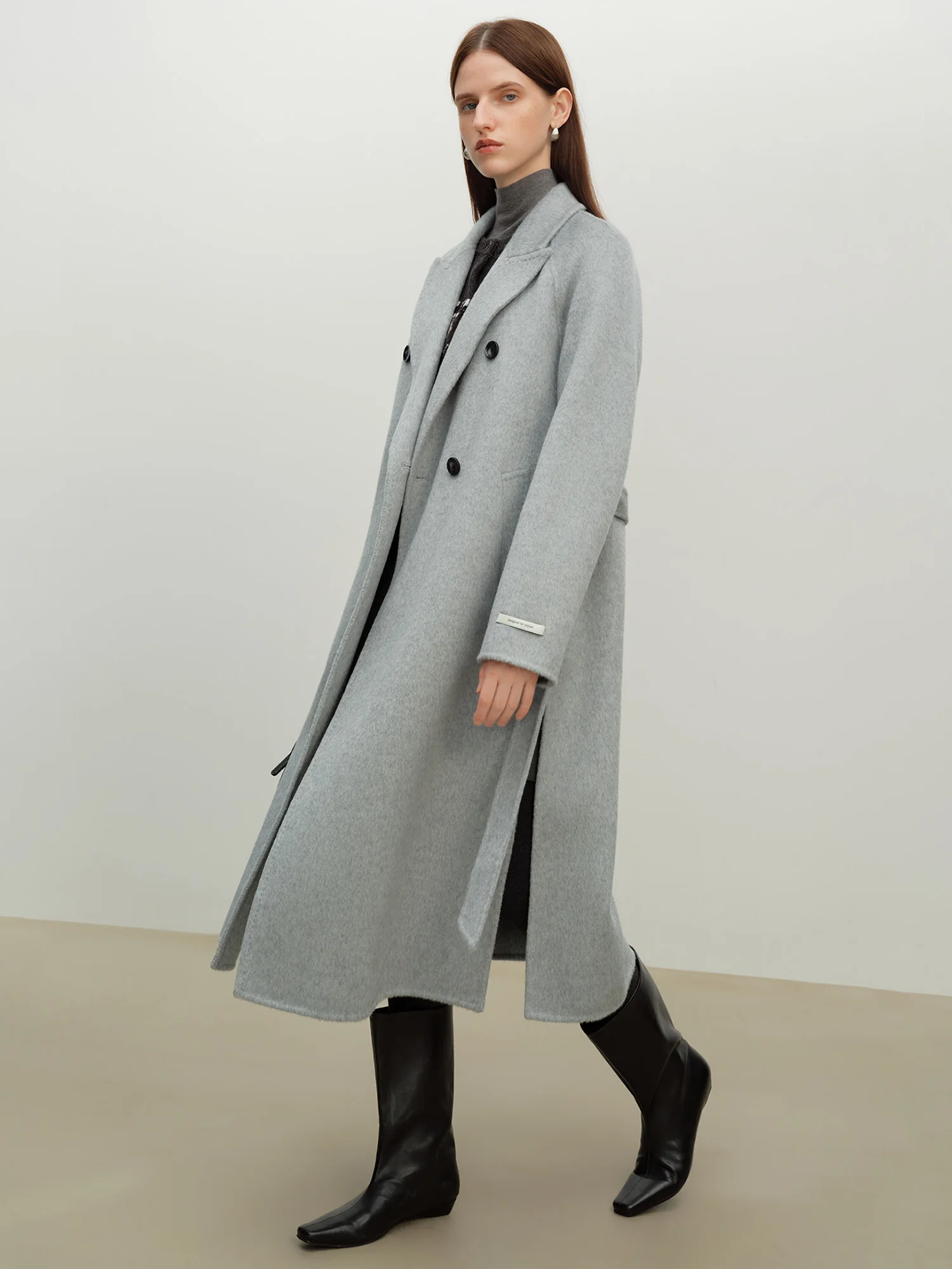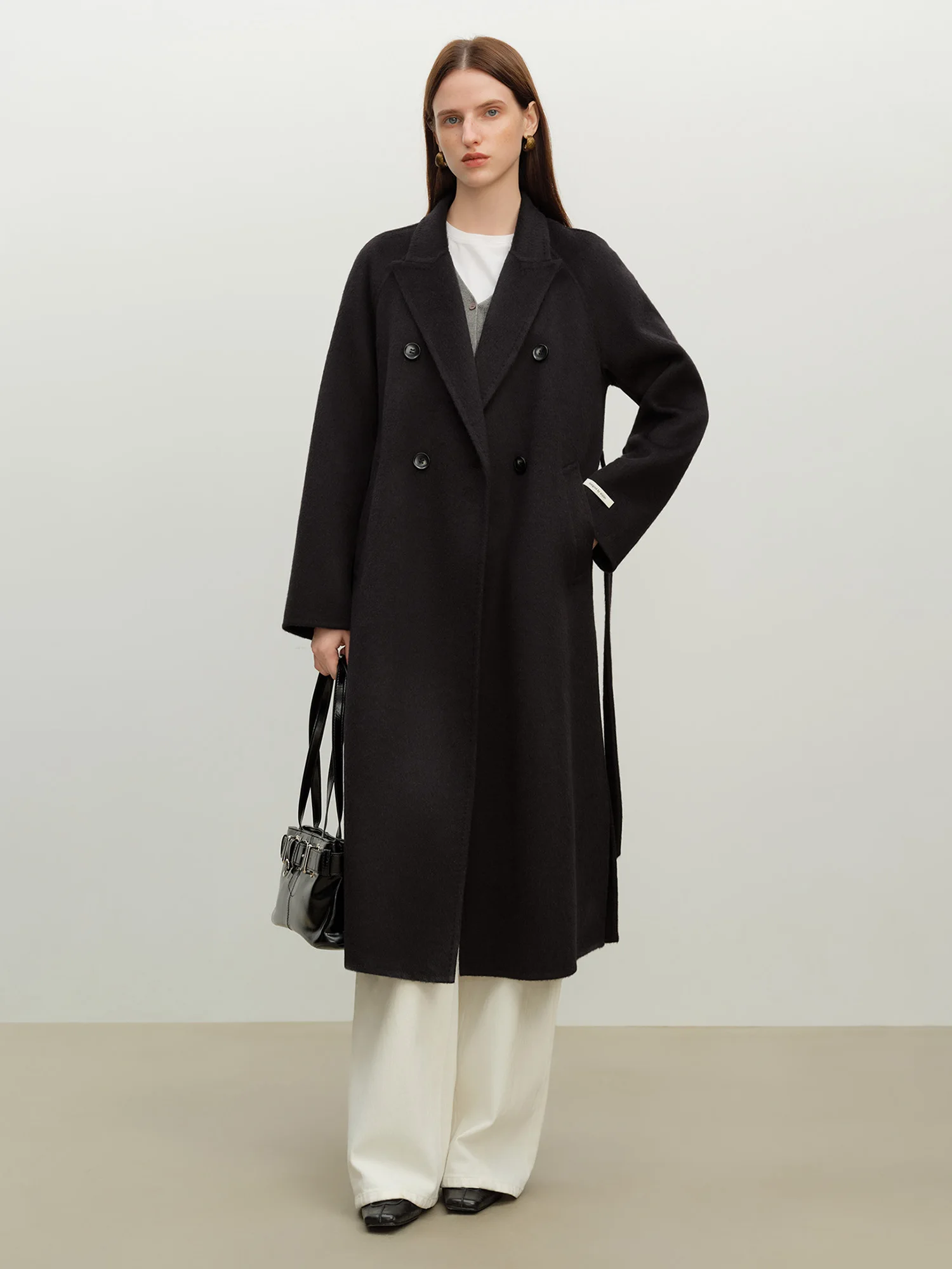 ZIQIAO 2025 Cappotto lungo da donna invernale in misto lana con risvolto con tacca – Elegante cappotto stile trench per abbigliamento casual e da ufficio