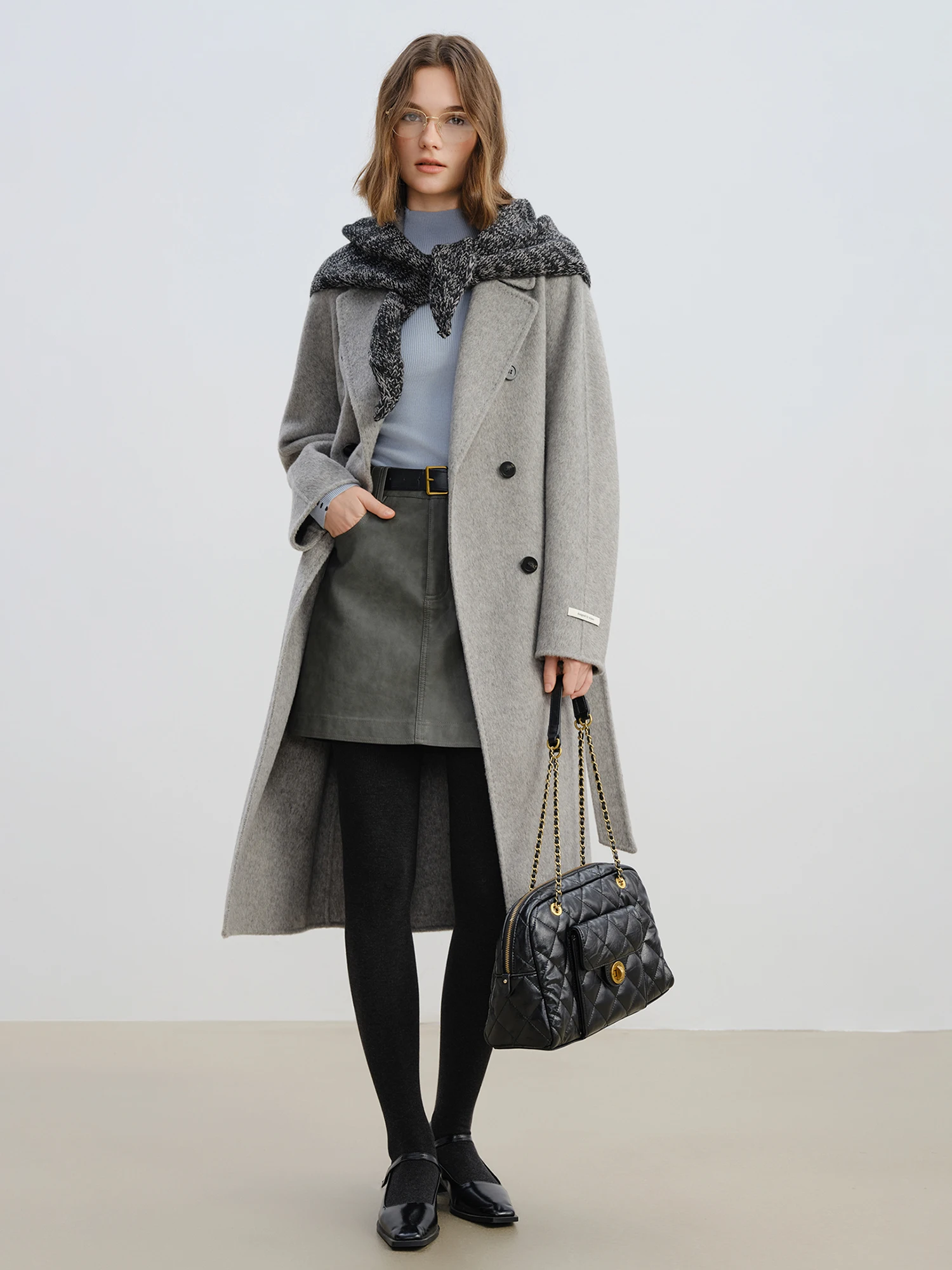 ZIQIAO Cappotto di lana Petite da donna alla moda con risvolto del vestito 2025 Nuovo arrivo invernale Cappotti di lana 100% Colletto lungo Cappotto invernale