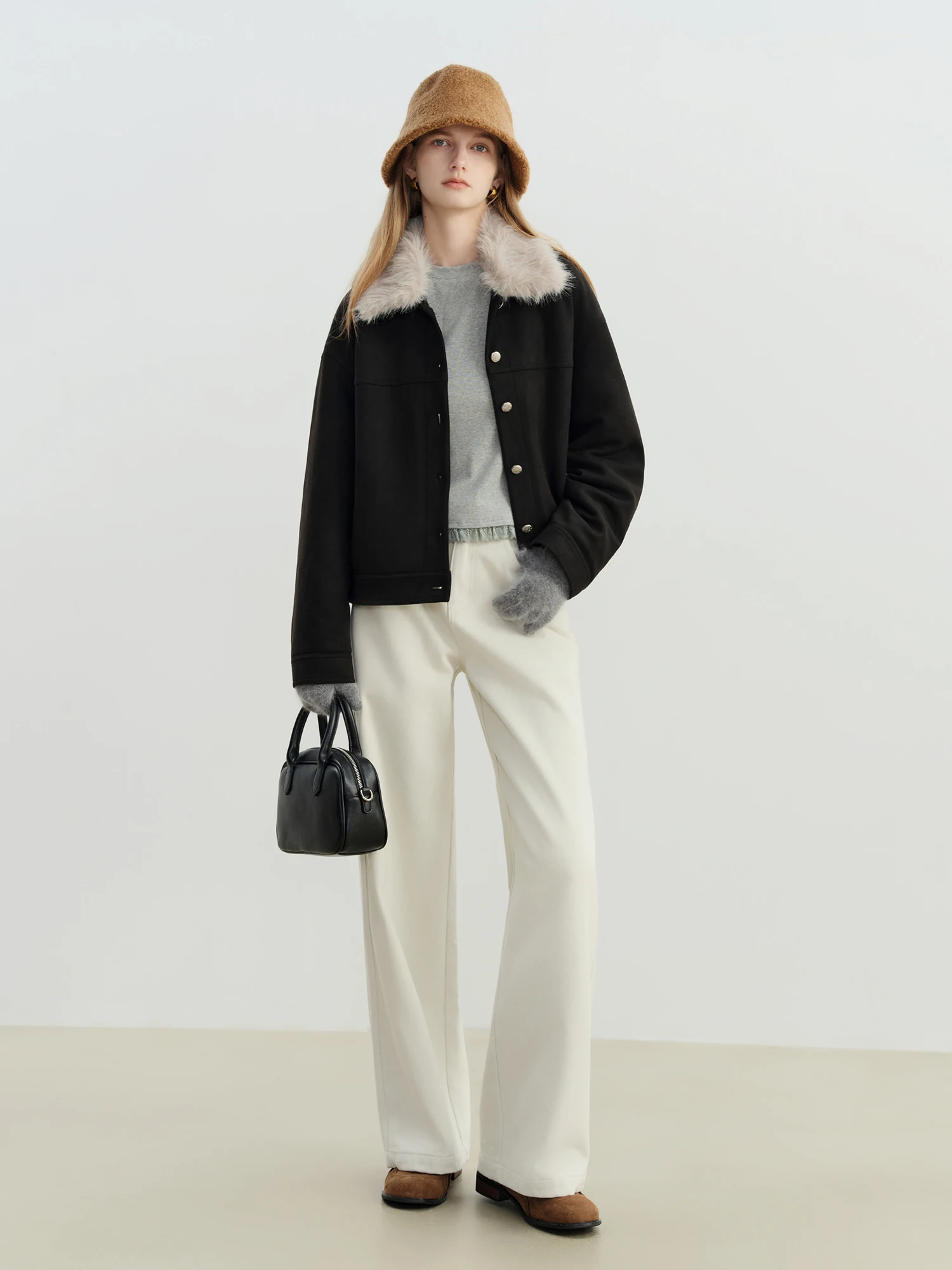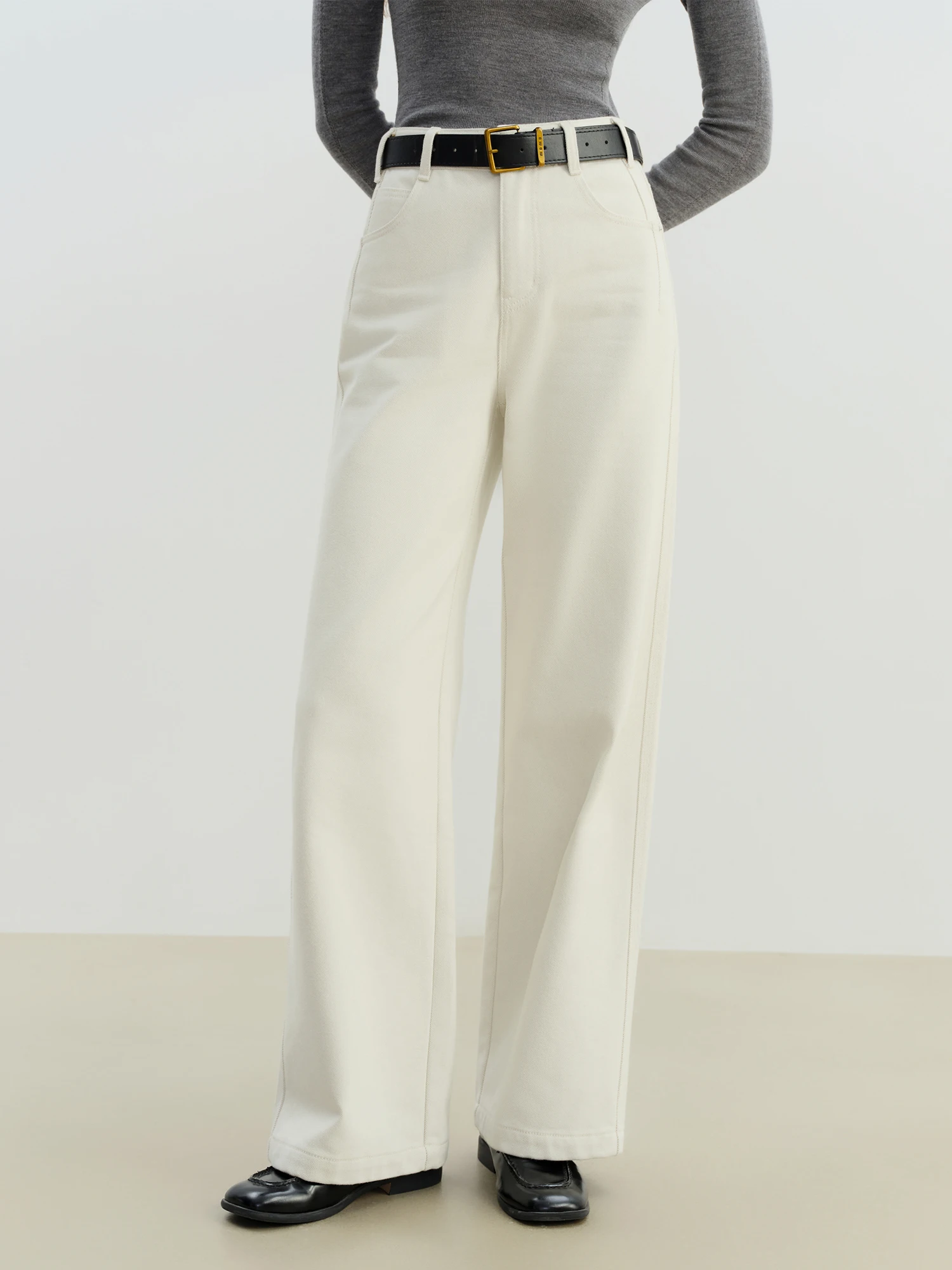 ZIQIAO Jeans da donna Petite dimagranti a gamba dritta Foderati in pile per un massimo comfort 2025 Nuovo arrivo invernale Gamba larga Lunghezza pavimento