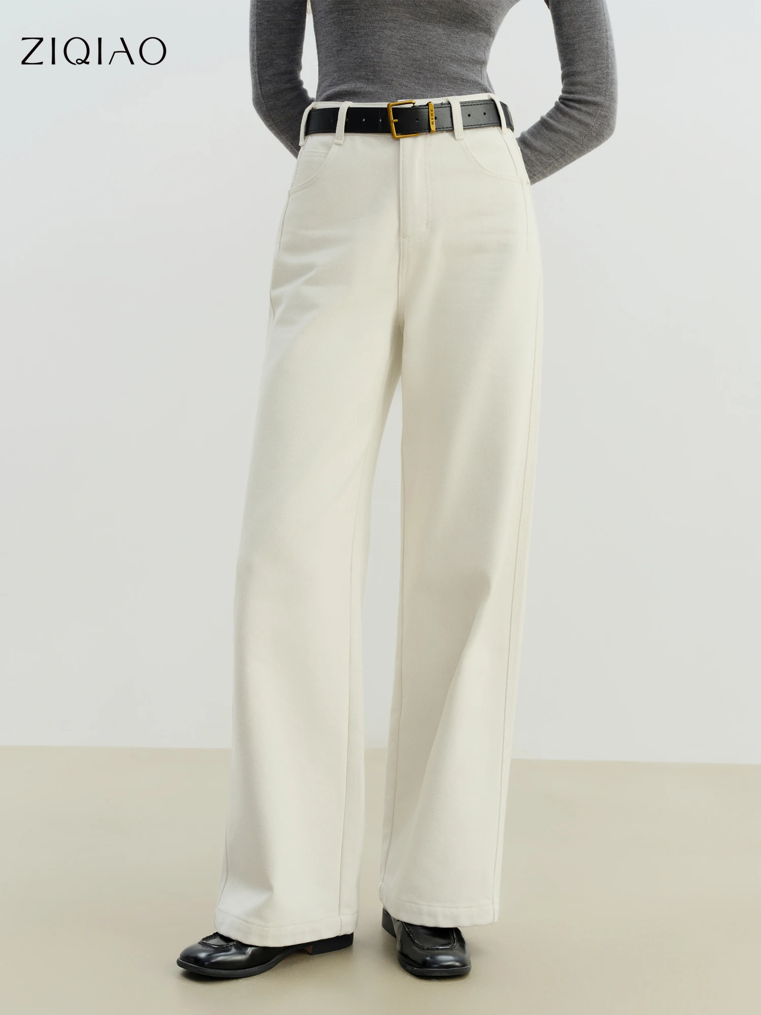 ZIQIAO Jeans da donna Petite dimagranti a gamba dritta Foderati in pile per un massimo comfort 2025 Nuovo arrivo invernale Gamba larga Lunghezza pavimento