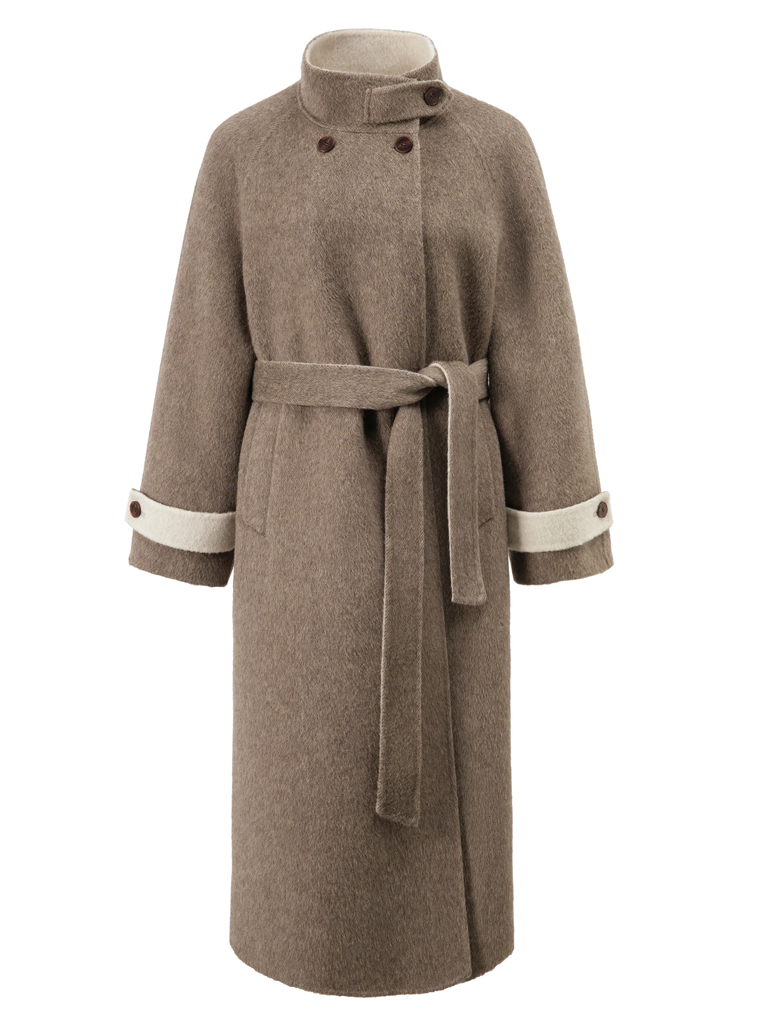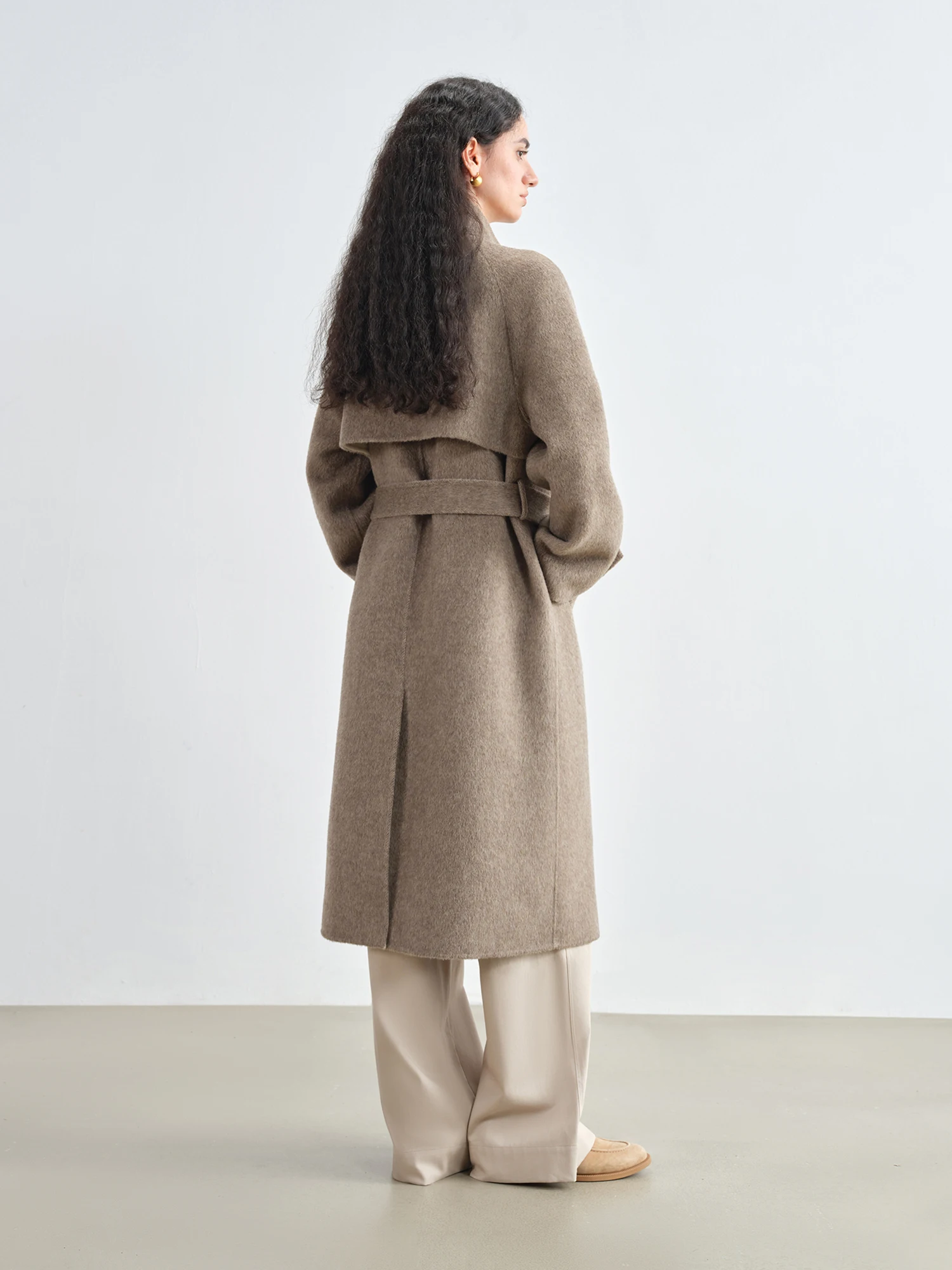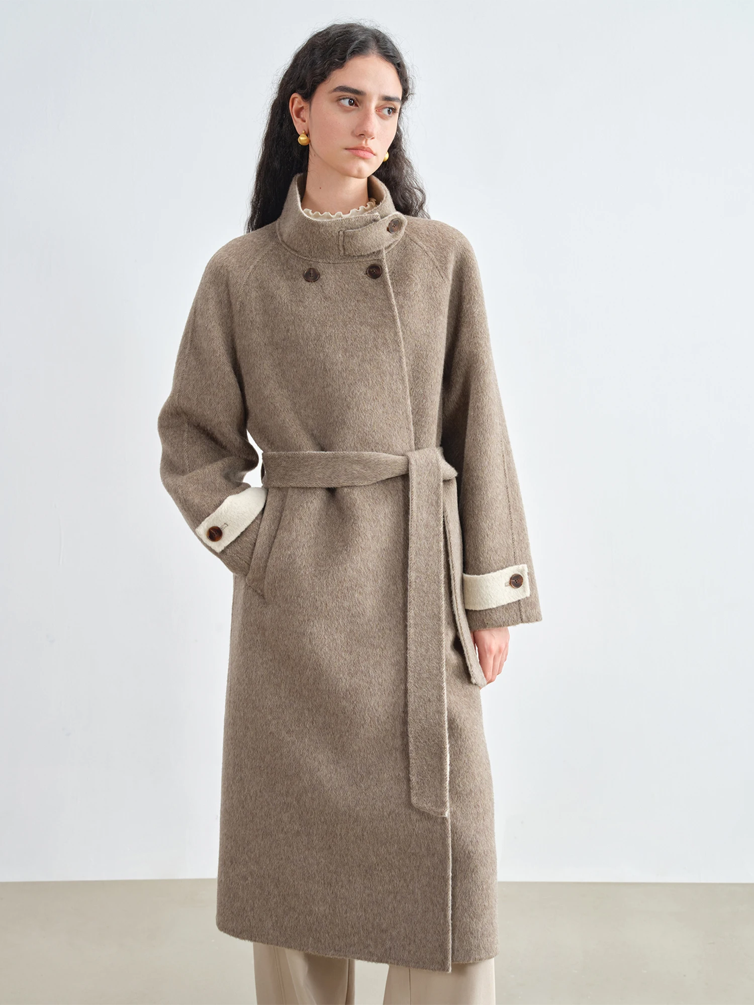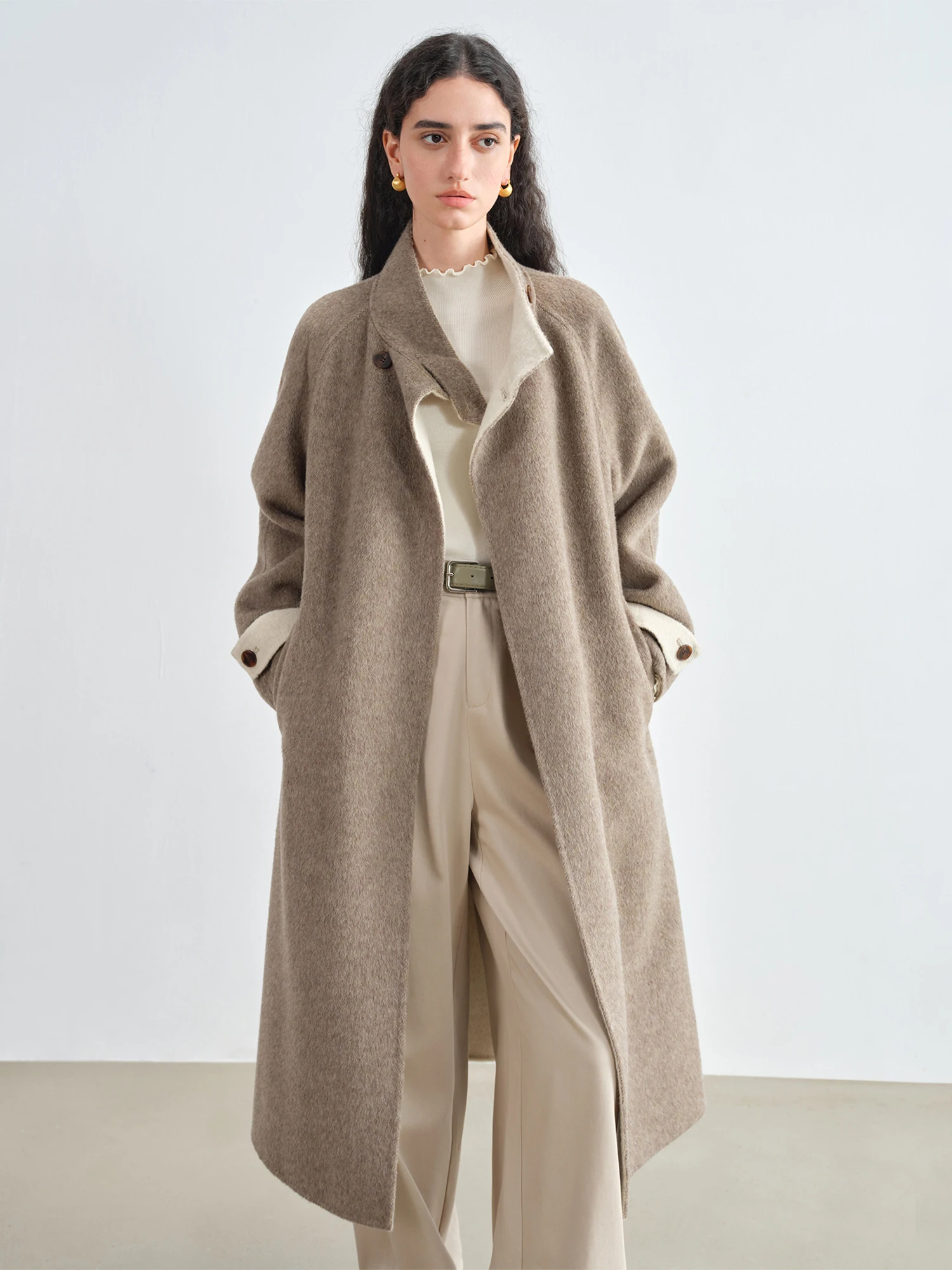 ZIQIAO Petite Cappotto di lana double face in pelo di cammello per donna 2025 Cappotto di lana giacca a vento nuovo stile Colletto alla coreana Retro elegante