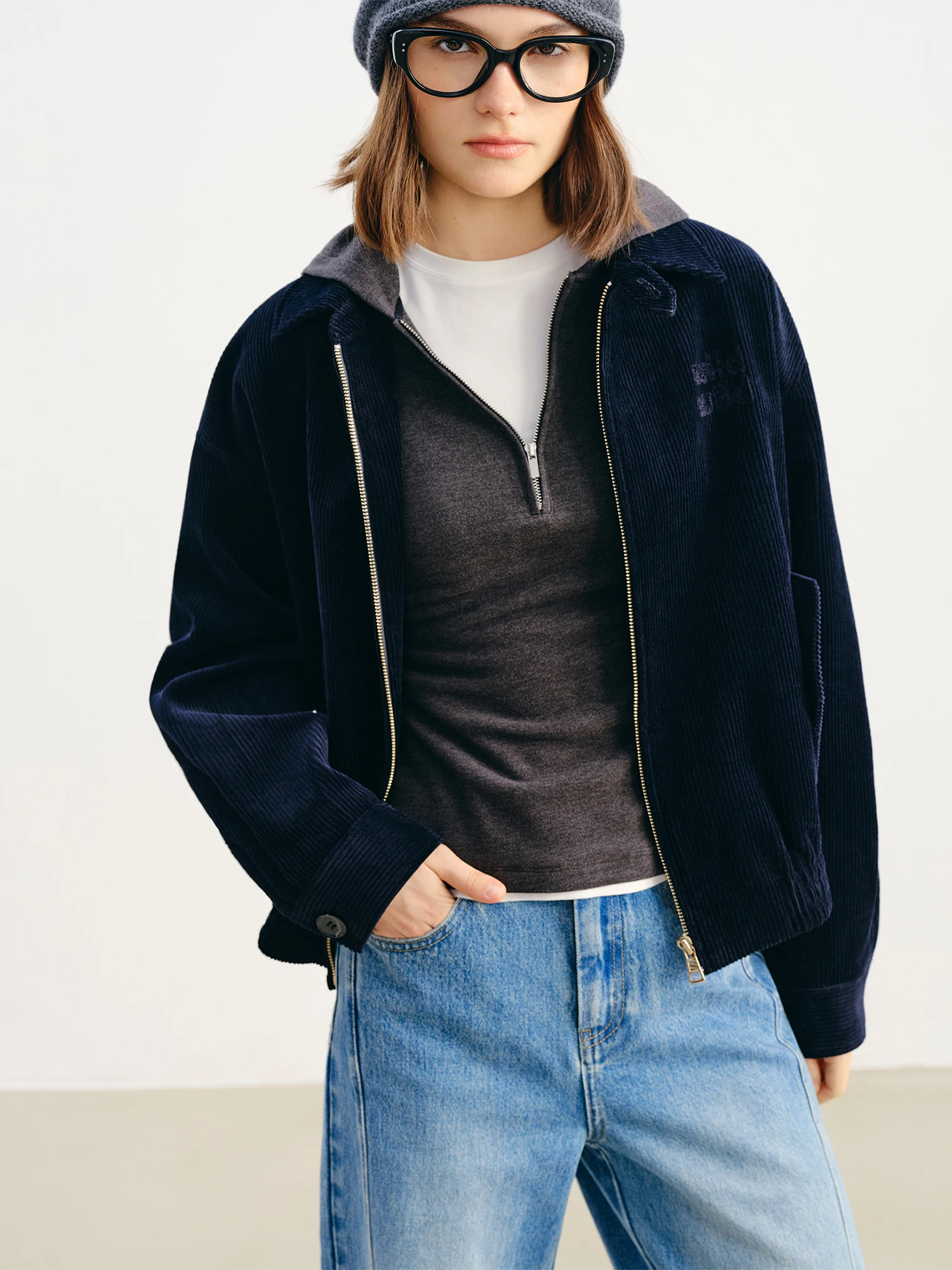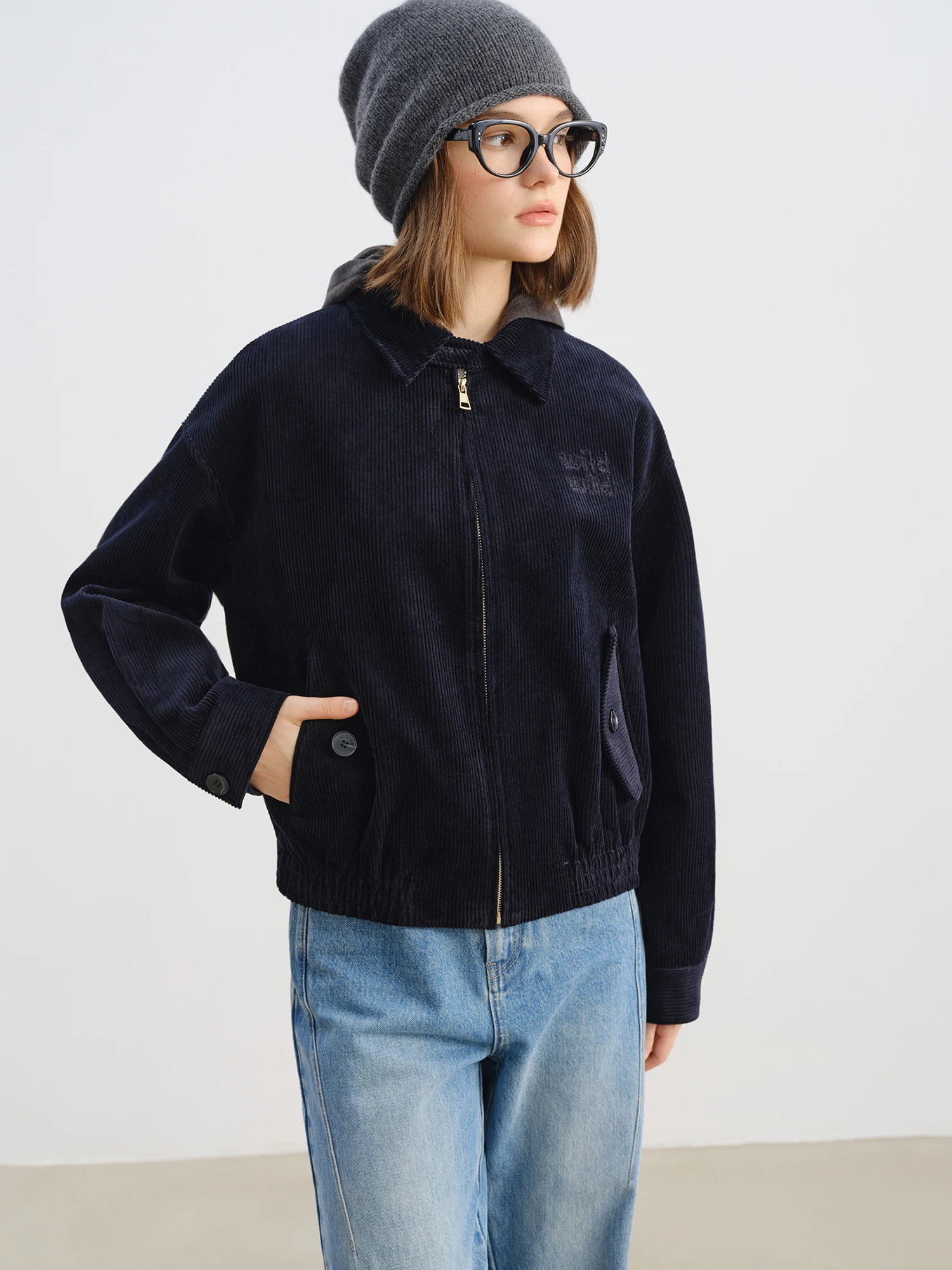 ZIQIAO Petite Giacca in velluto a coste collegiale ispirata al Miu retrò con colletto piccolo e risvolto 2025 Autunno Inverno Nuova collezione Giacche