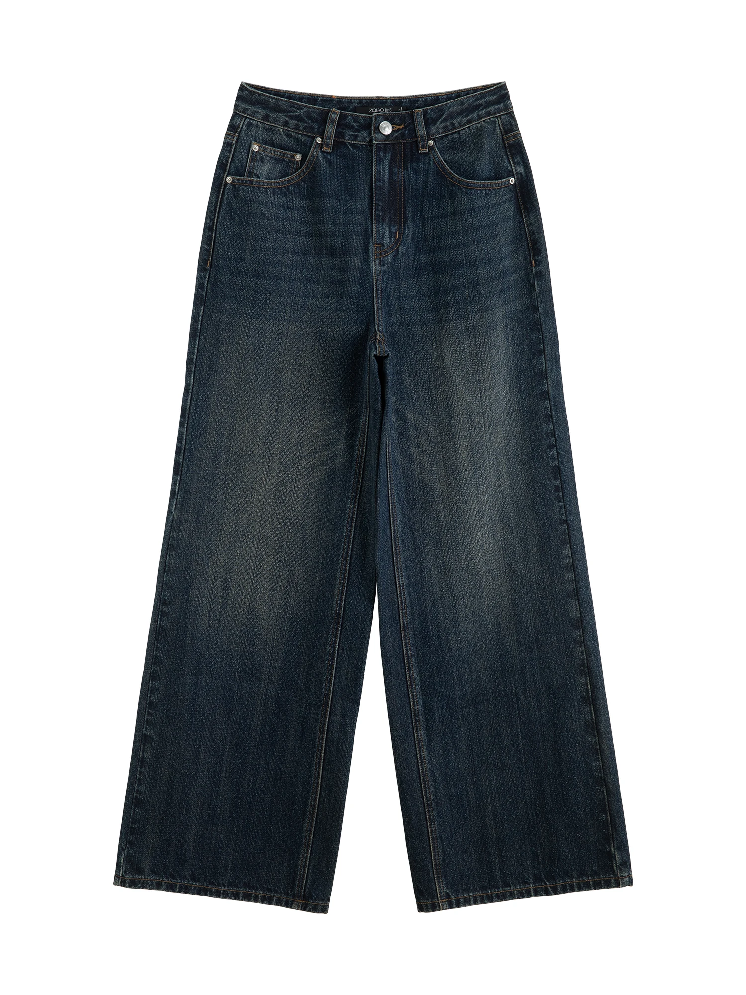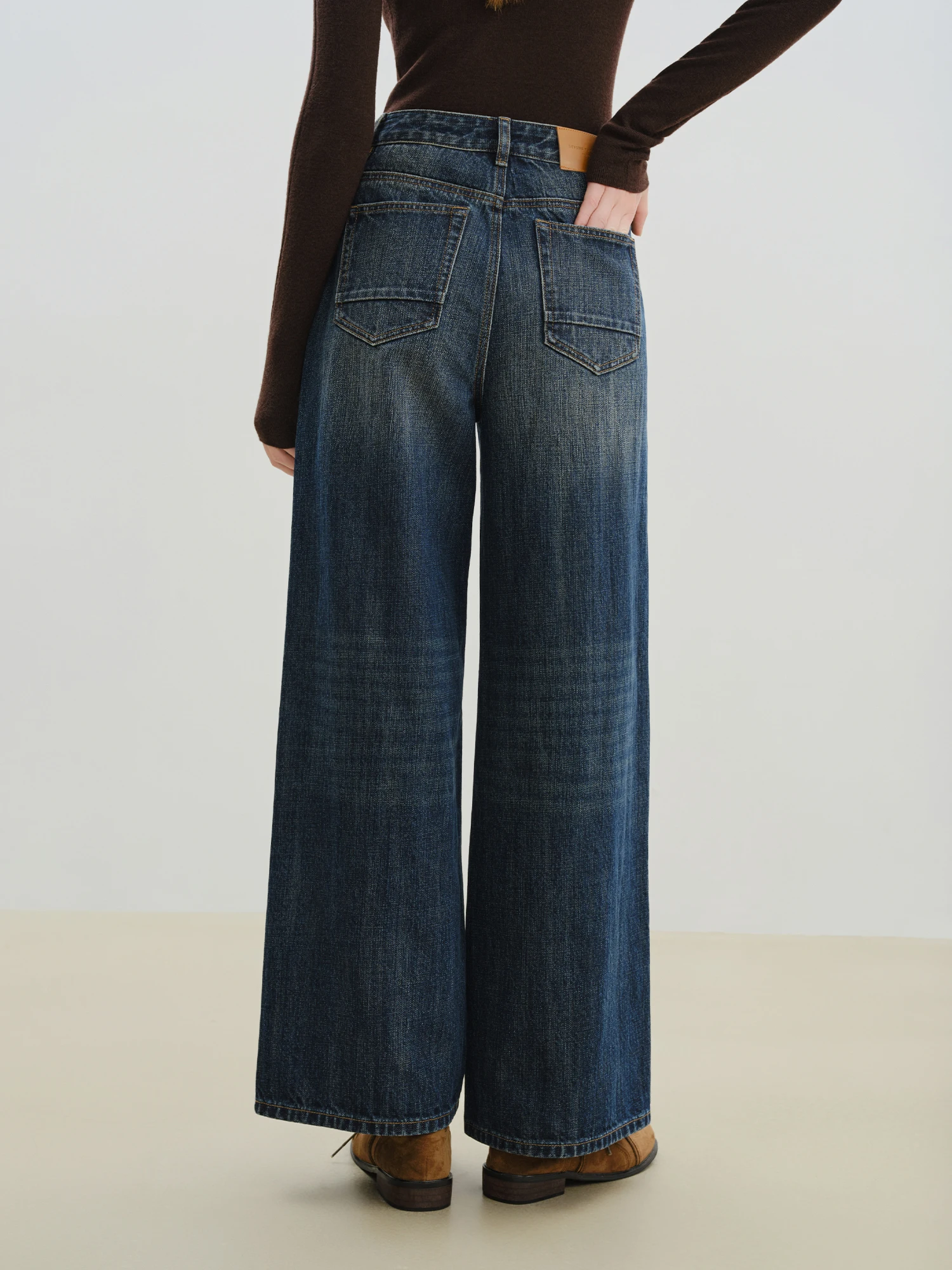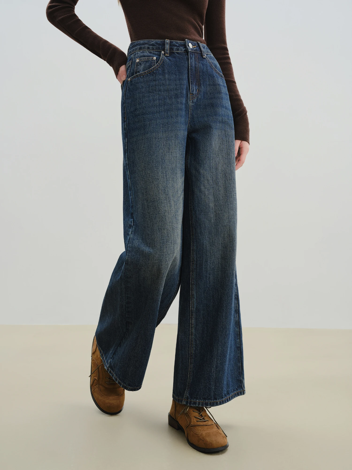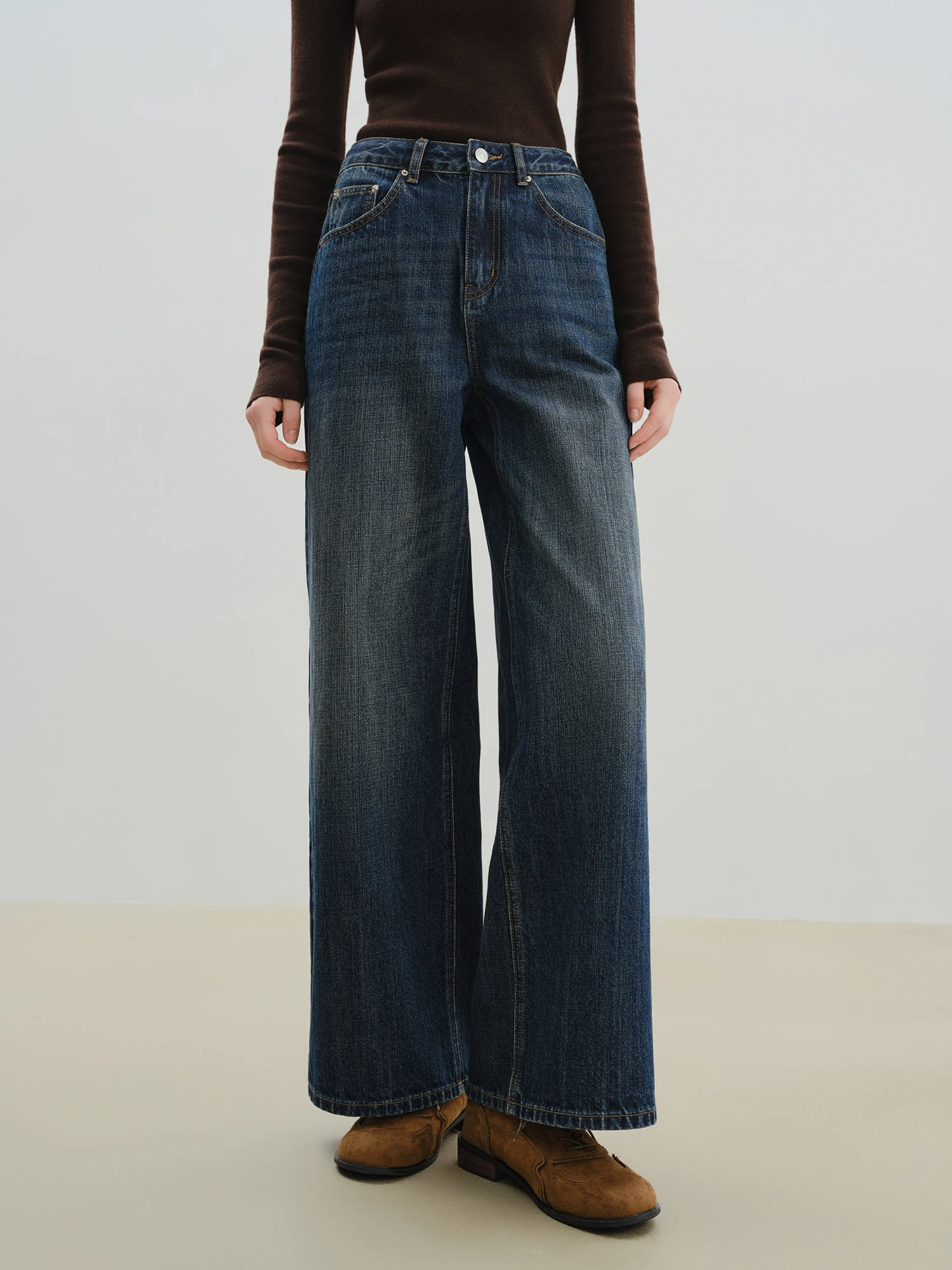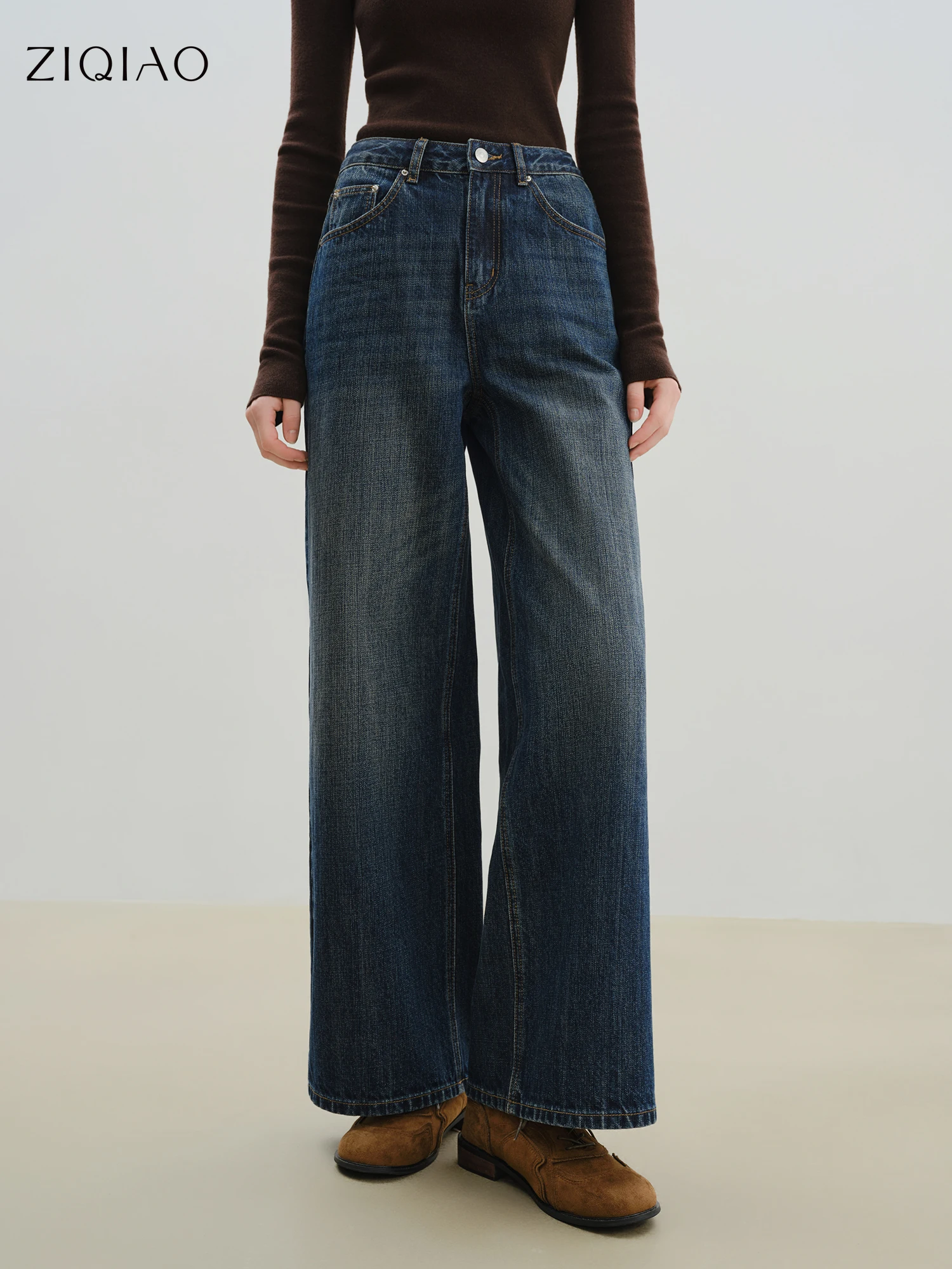 ZIQIAO Petite Jeans a gamba larga lavati retrò da donna 2025 Autunno/Inverno Nuovo arrivo Jeans dimagranti a vita alta con taglio dritto