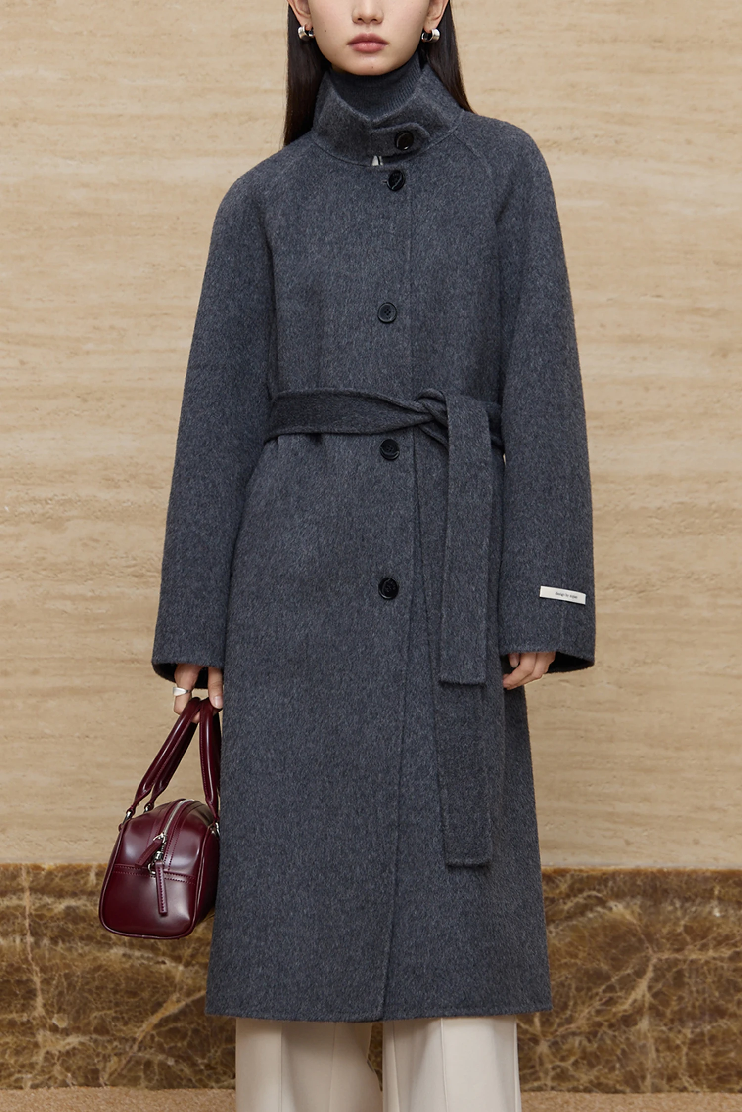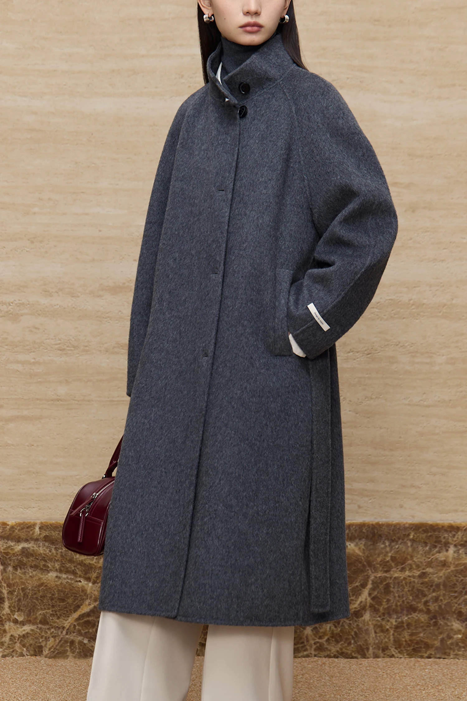 ZIQIAO Petite Size grigio colletto in piedi cappotto di lana a doppia faccia per donna inverno 2024 nuovo cappotto di lana di fascia alta 24 zq94163
