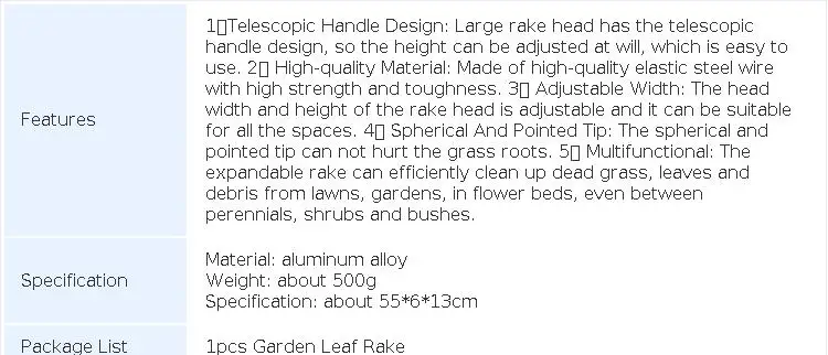 ZK10 Rastrello per foglie da giardino regolabile Zappa telescopica Strumento per erba Rastrello in metallo multidente per erba di fieno decidui del prato e del cortile