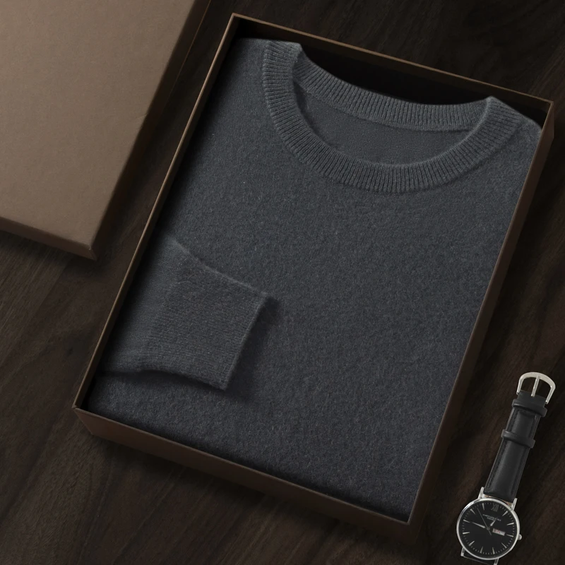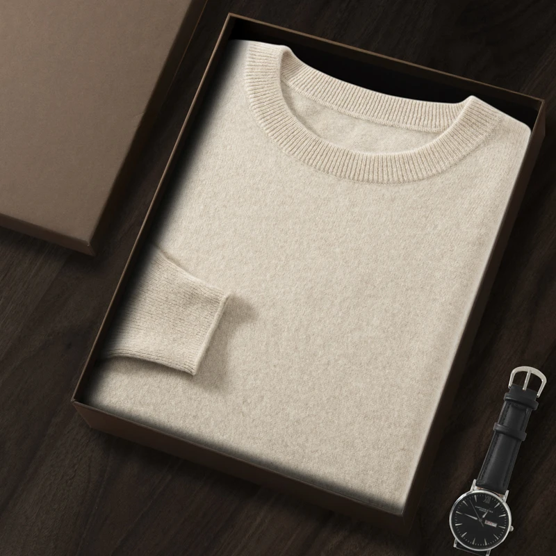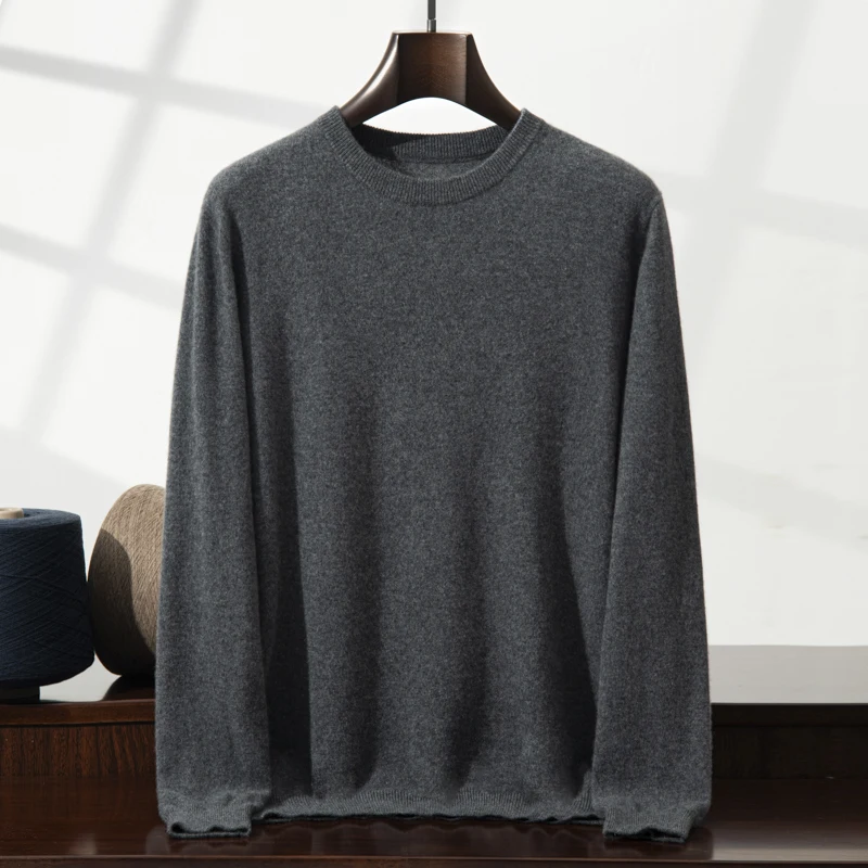 Nome del prodotto: Maglione lavorato a maglia tinta unita da uomo autunno inverno Casual girocollo manica lunga maglione in puro cashmere di capra Pullover da uomo
