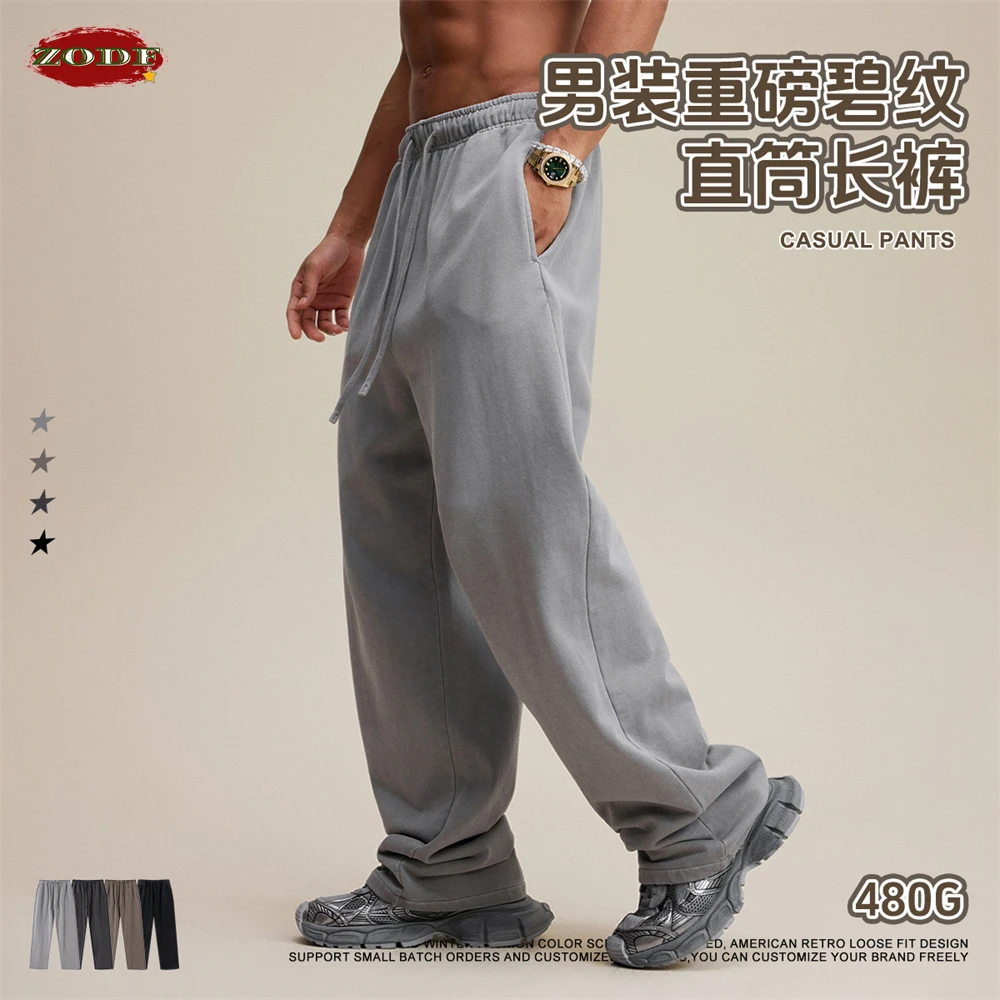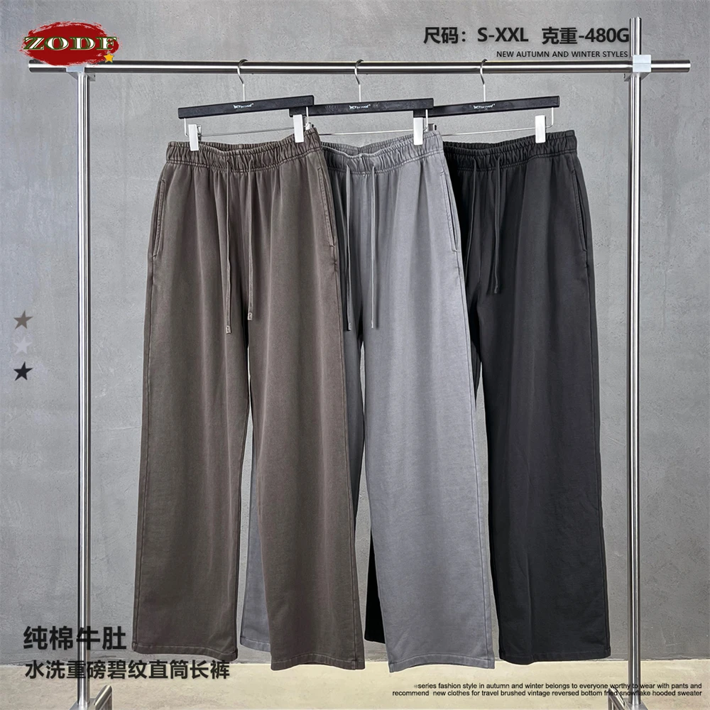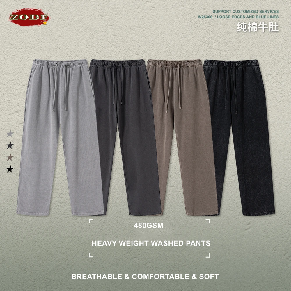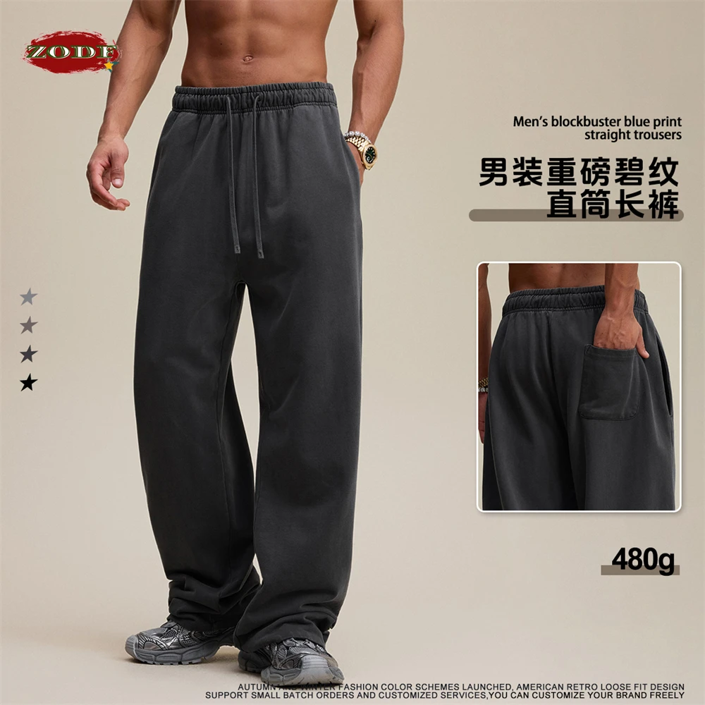 ZODF Vintage 2025 Inverno 480gsm Pantaloni Dritti Per Uomo Unisex Lavato Distressed 100% Cotone Pantaloni Larghi Marchio di Abbigliamento HY1121