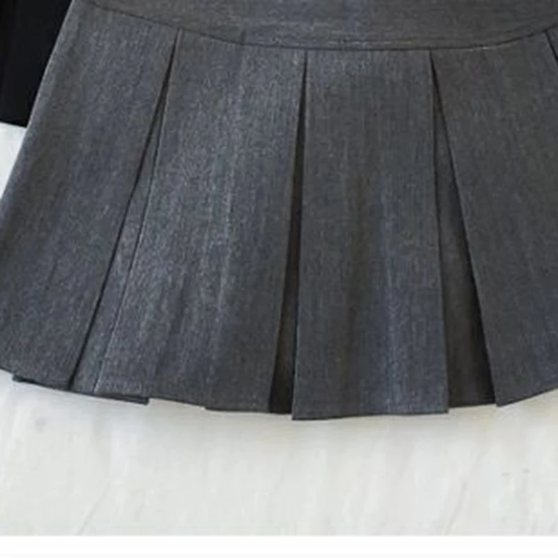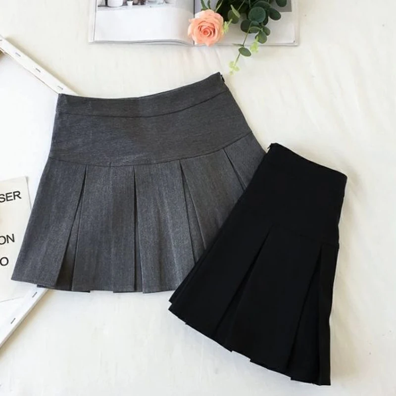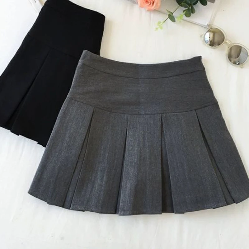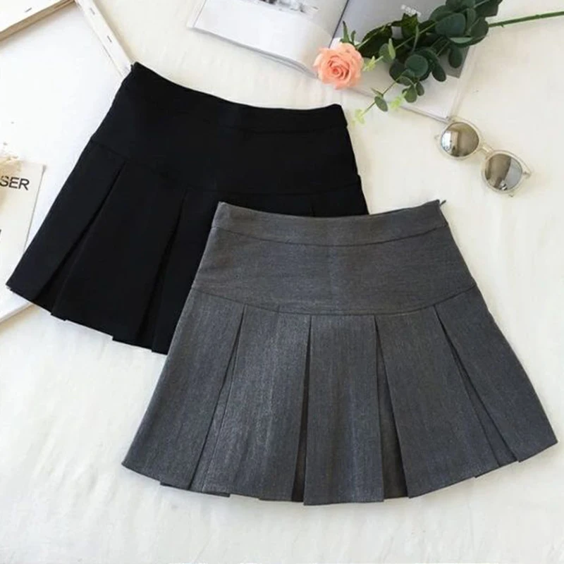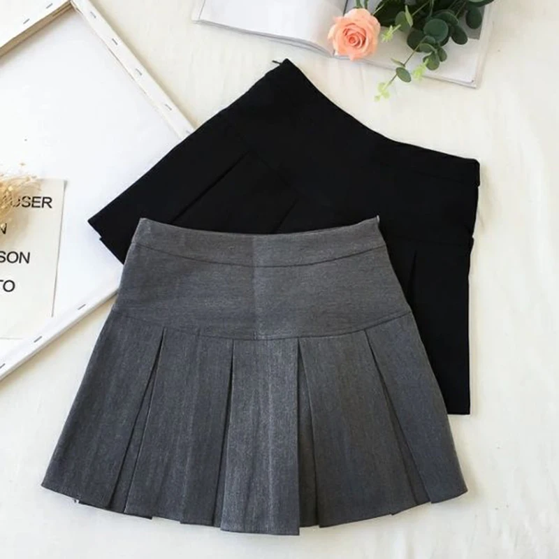 ZOKI Vintage grigio gonna a pieghe donna Kawaii a vita alta minigonne coreano moda scuola uniforme Harajuku Streetwear primavera