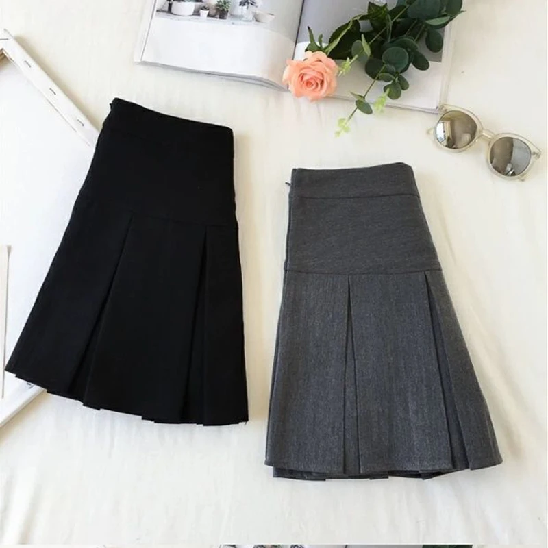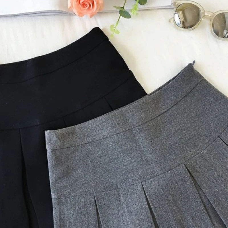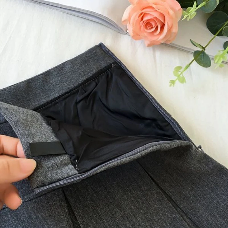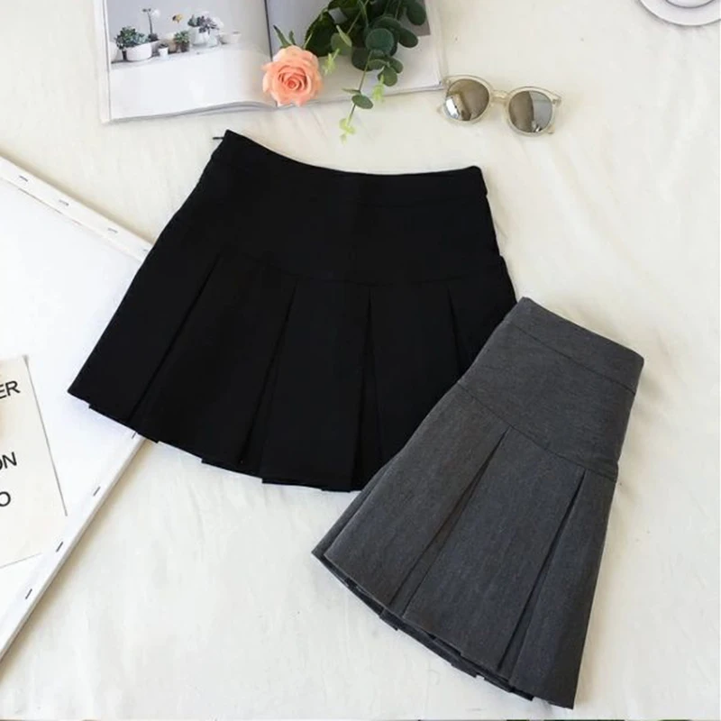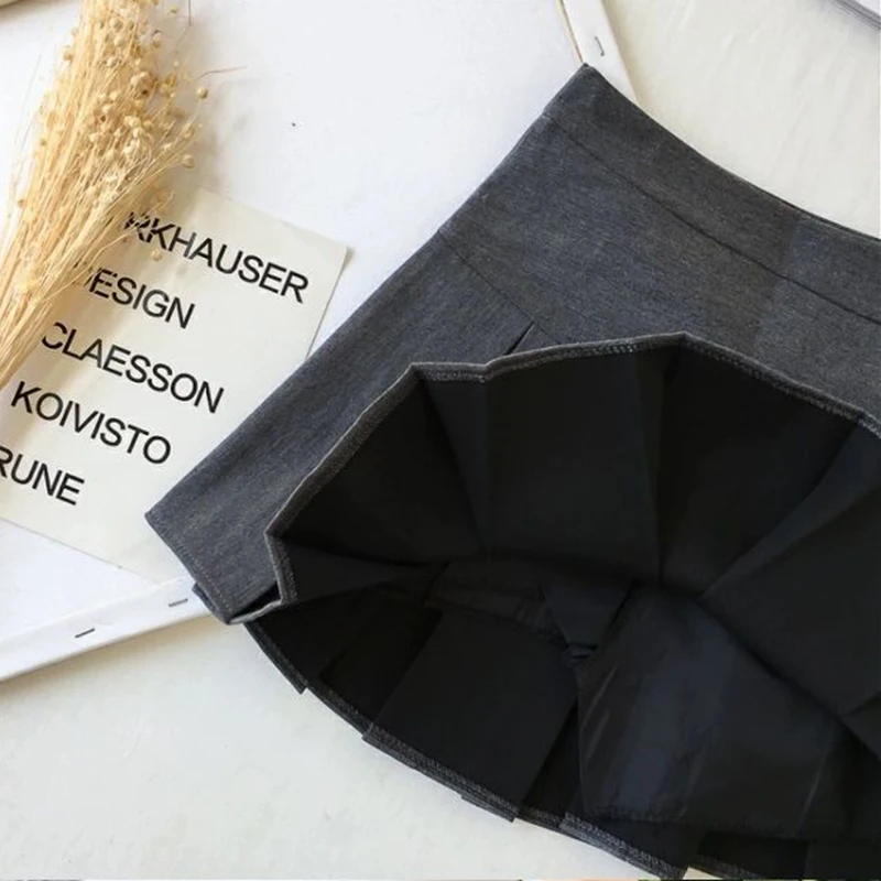 ZOKI Vintage grigio gonna a pieghe donna Kawaii a vita alta minigonne coreano moda scuola uniforme Harajuku Streetwear primavera